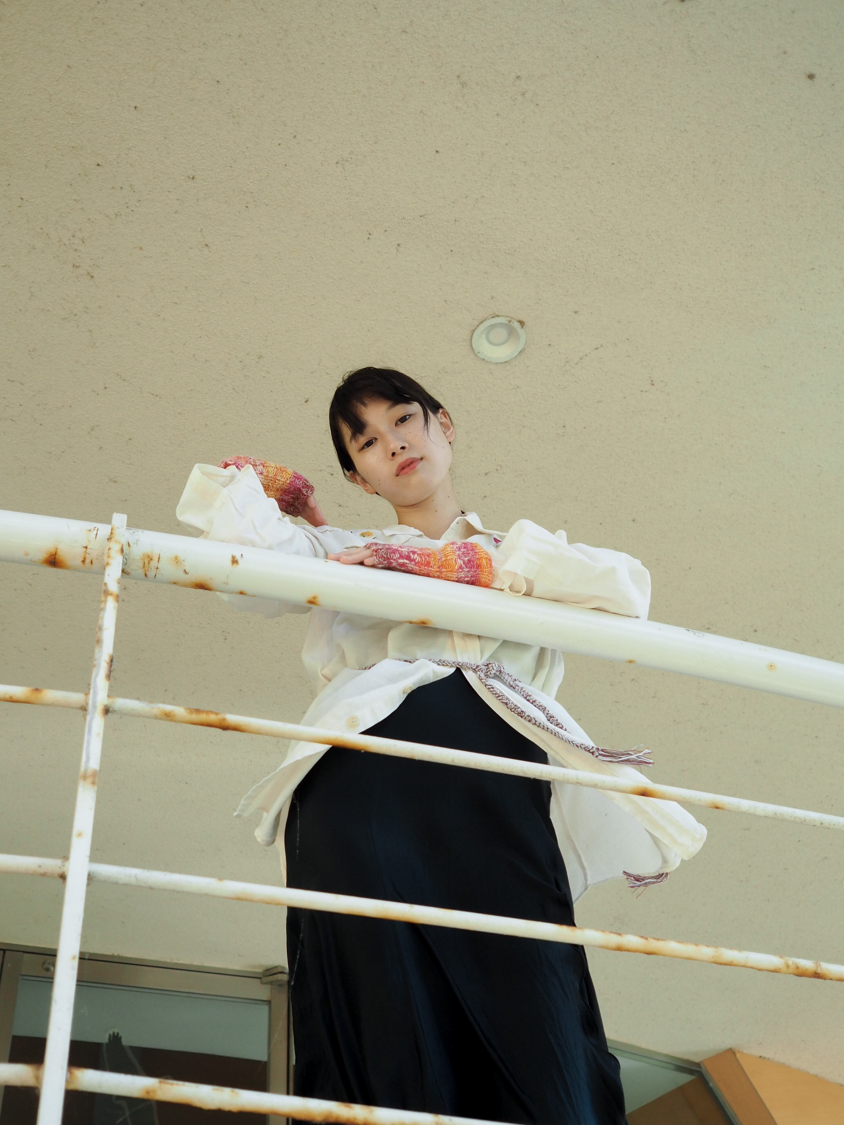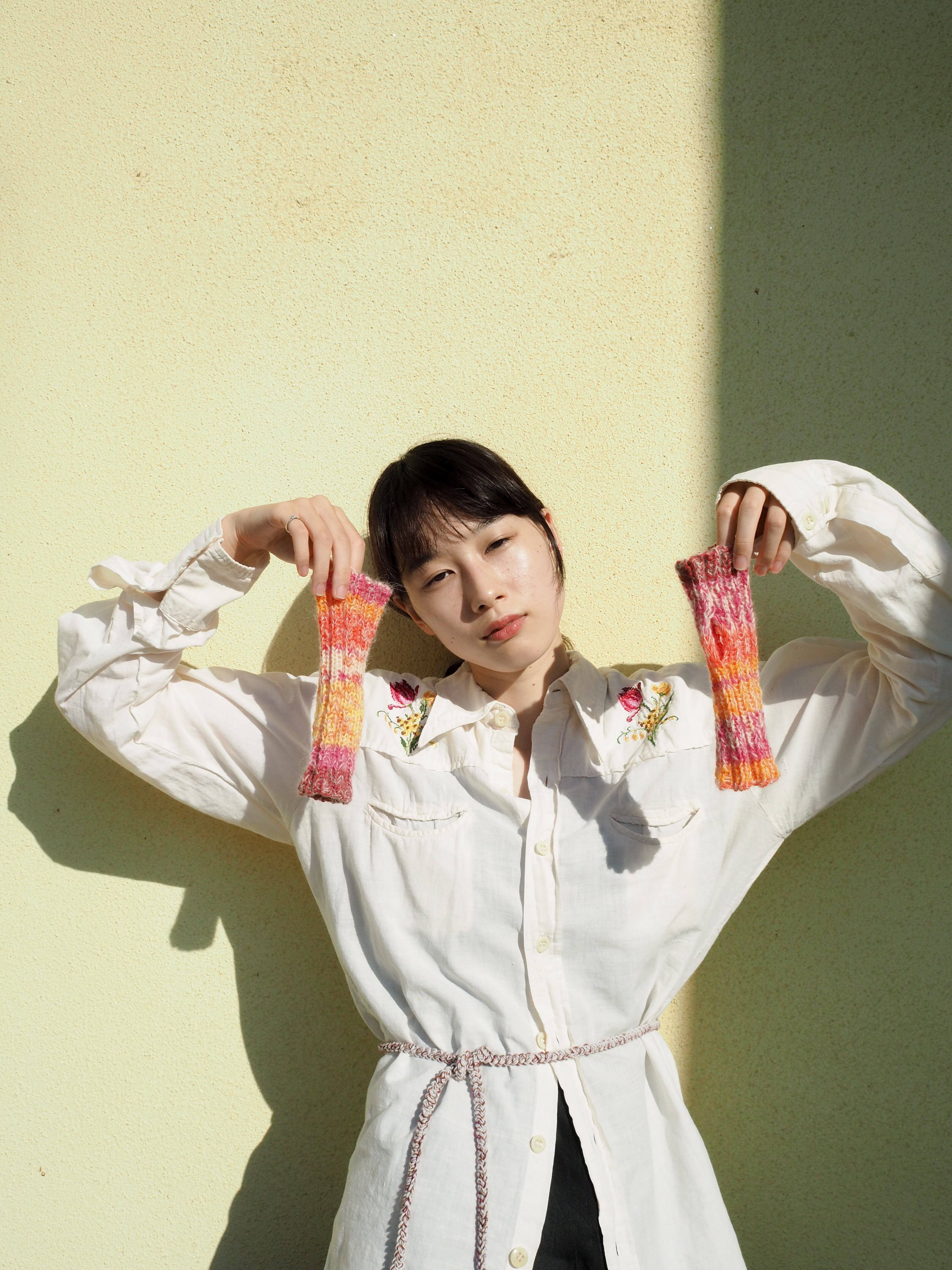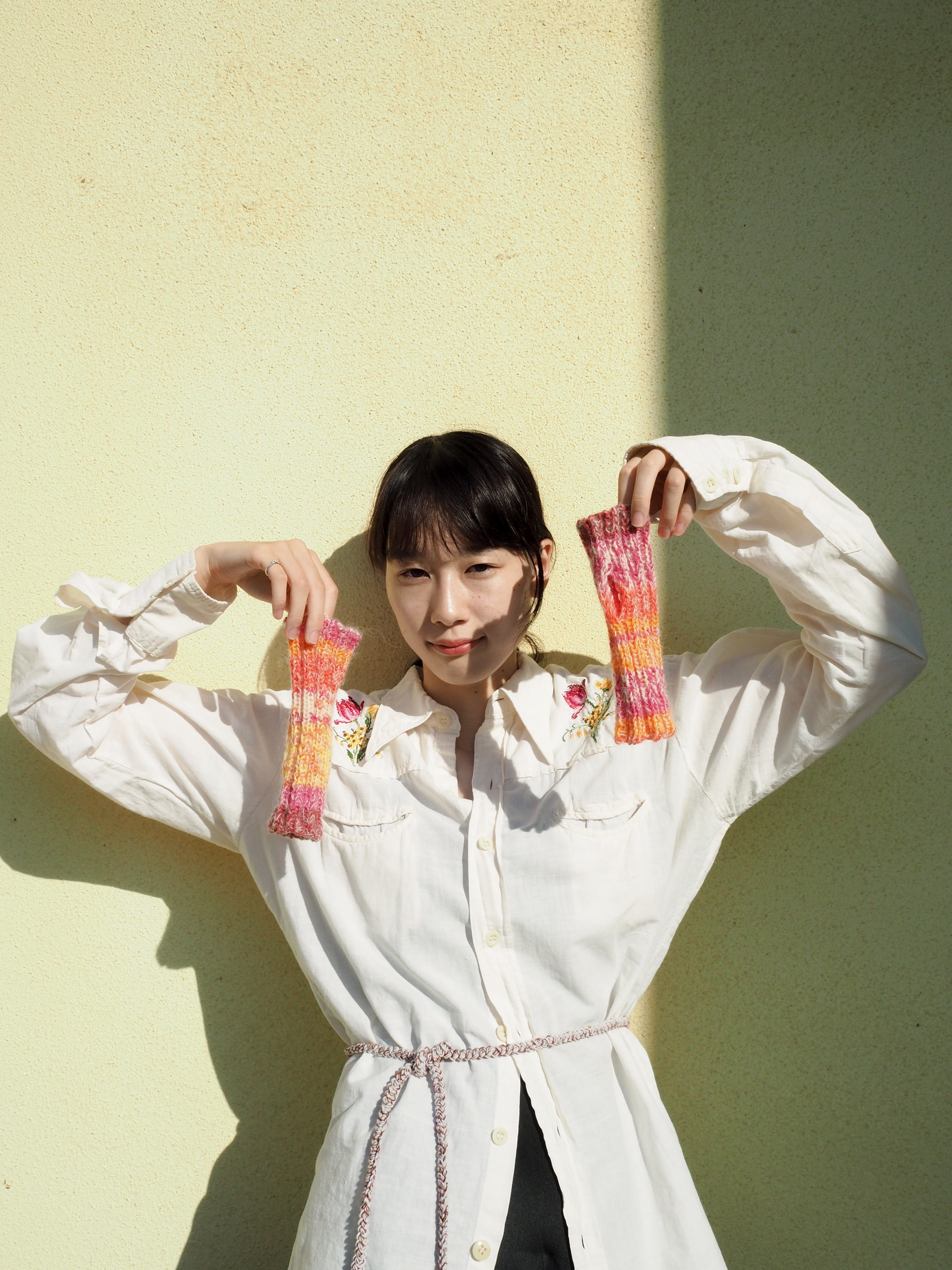 モヘアを引き揃えたアームウォーマー。