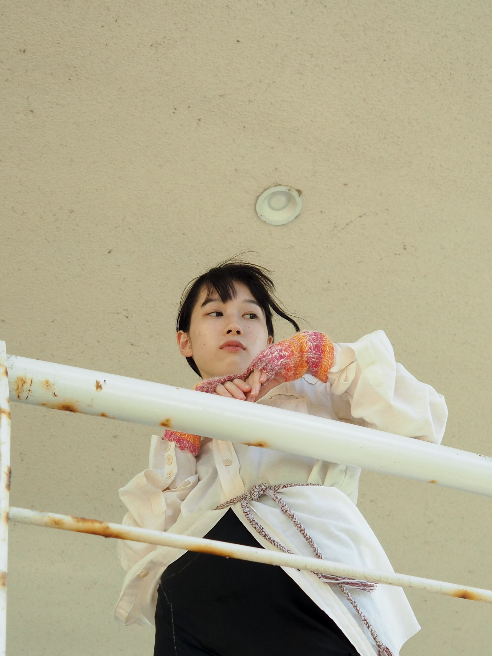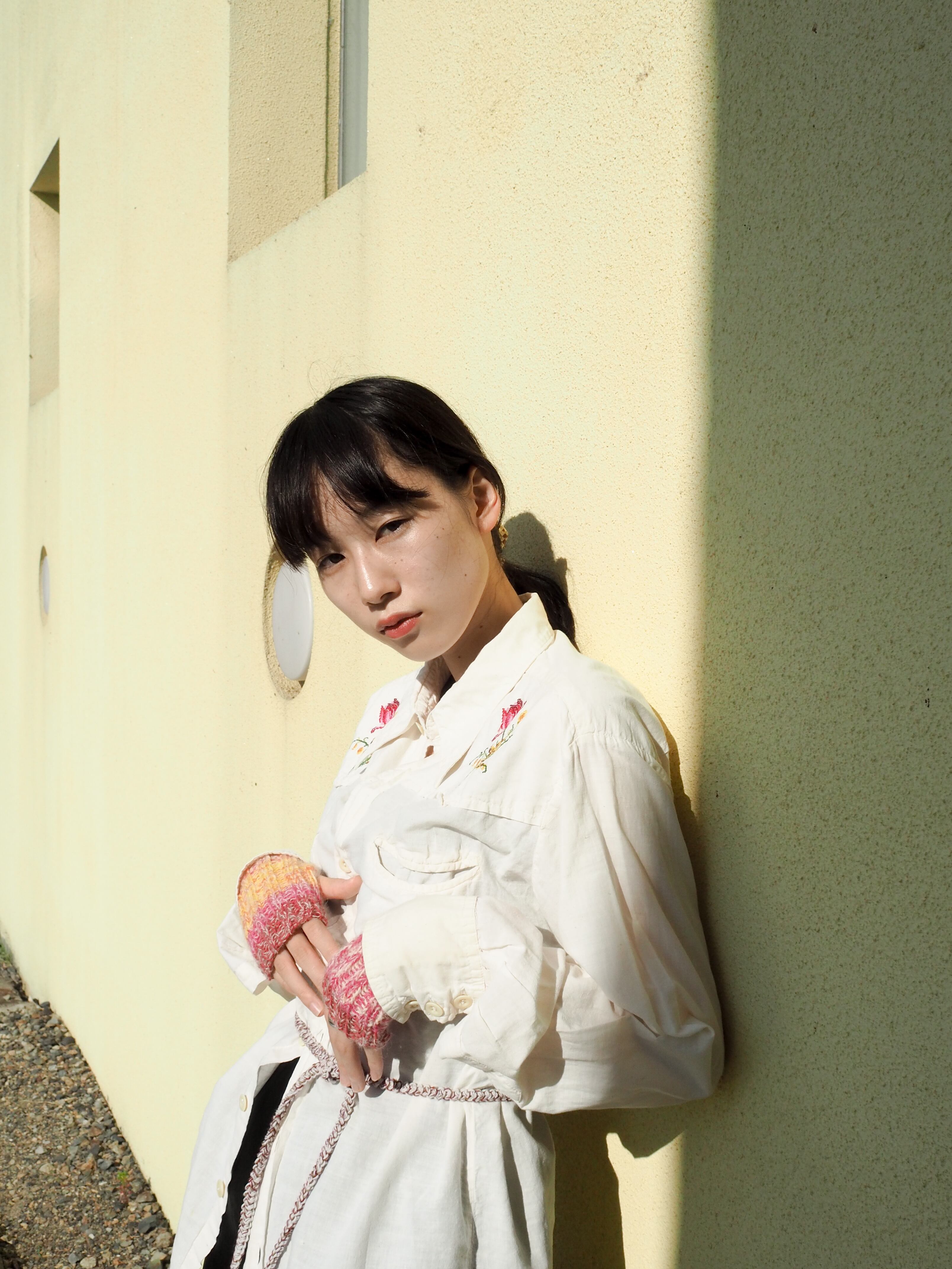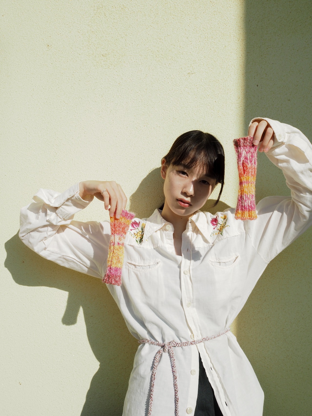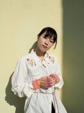モヘアを引き揃えたアームウォーマー。