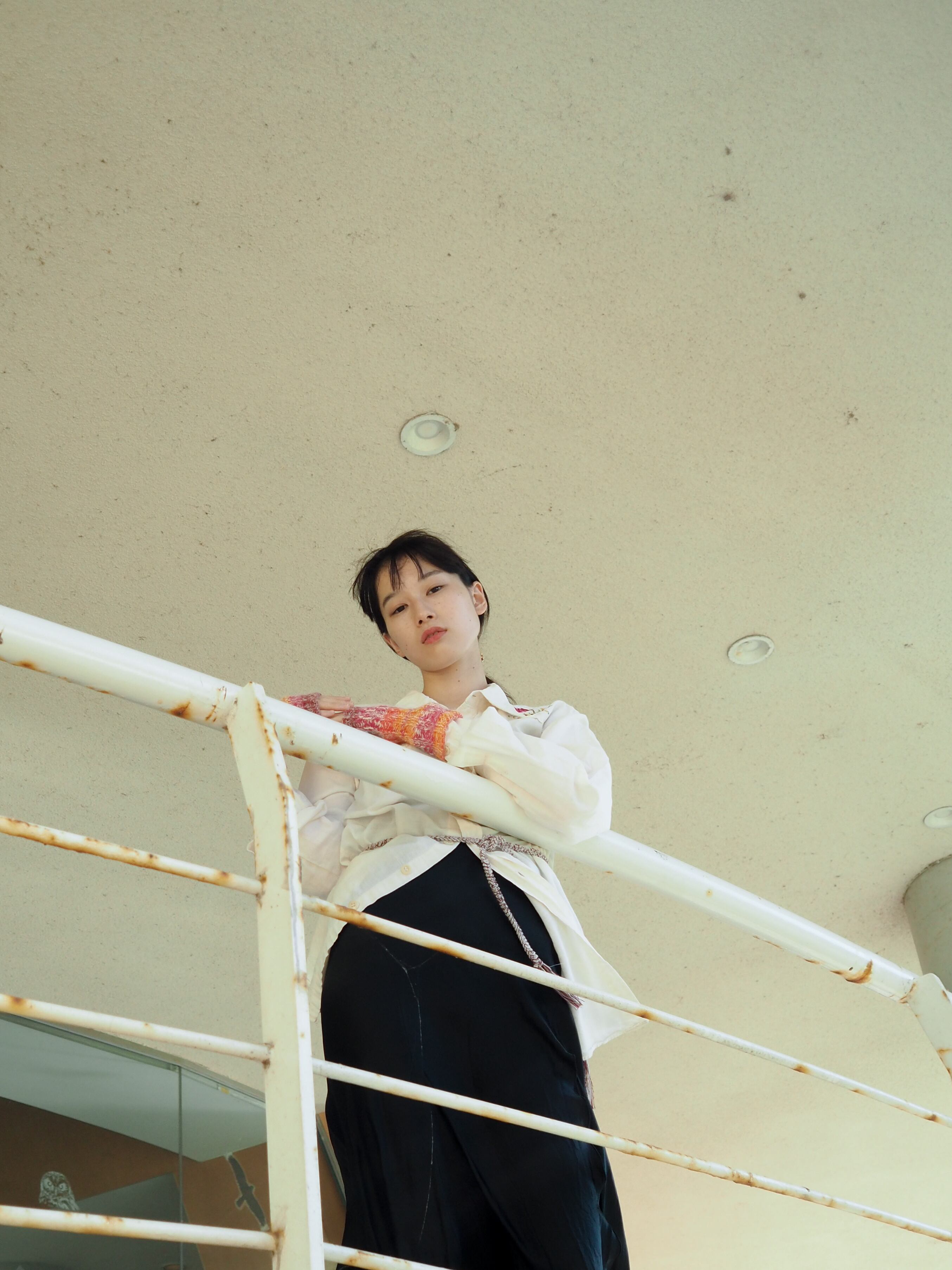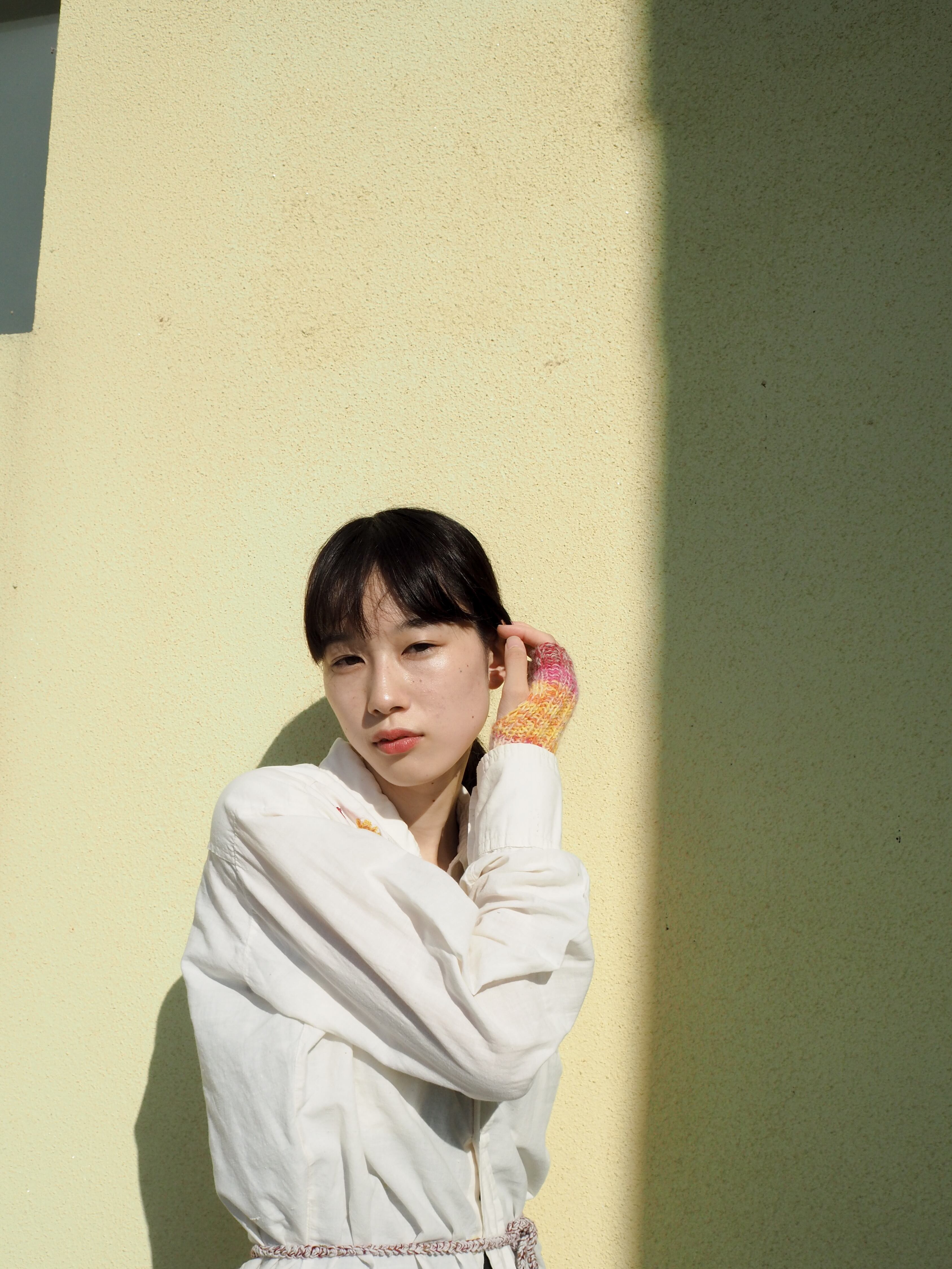 Rib arm warmer(short):white mohair