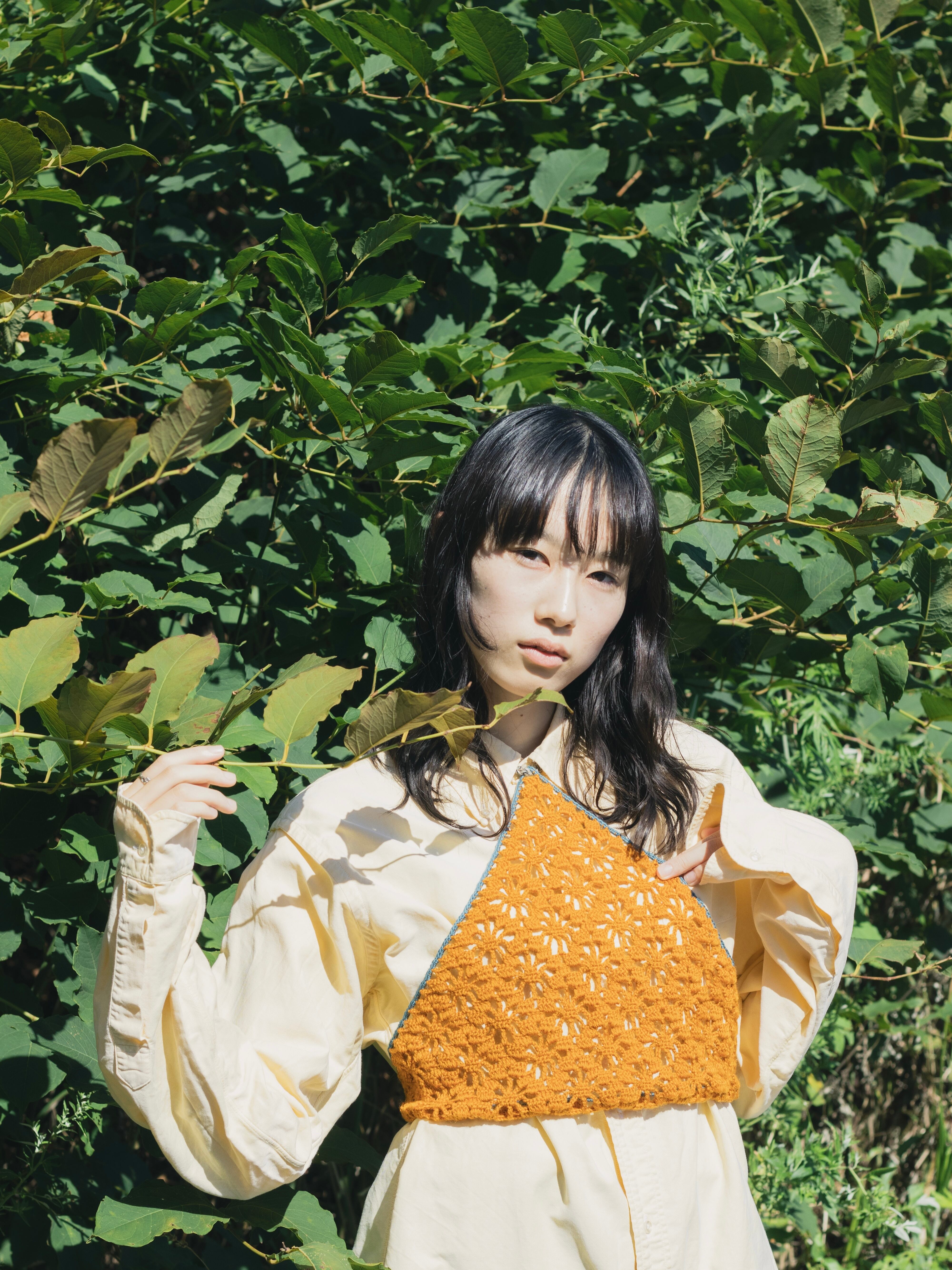 中細糸のクロシェバンダナ。