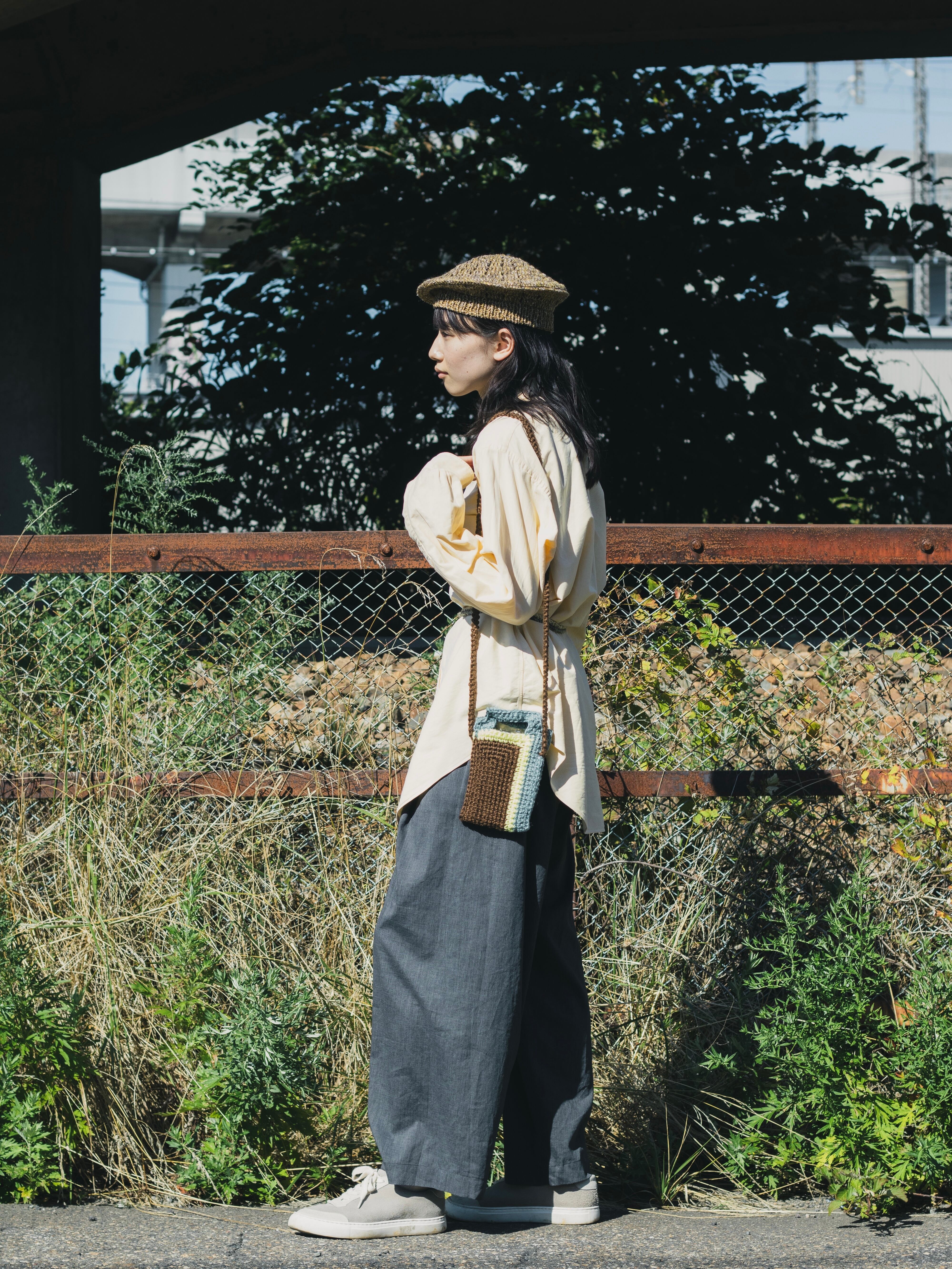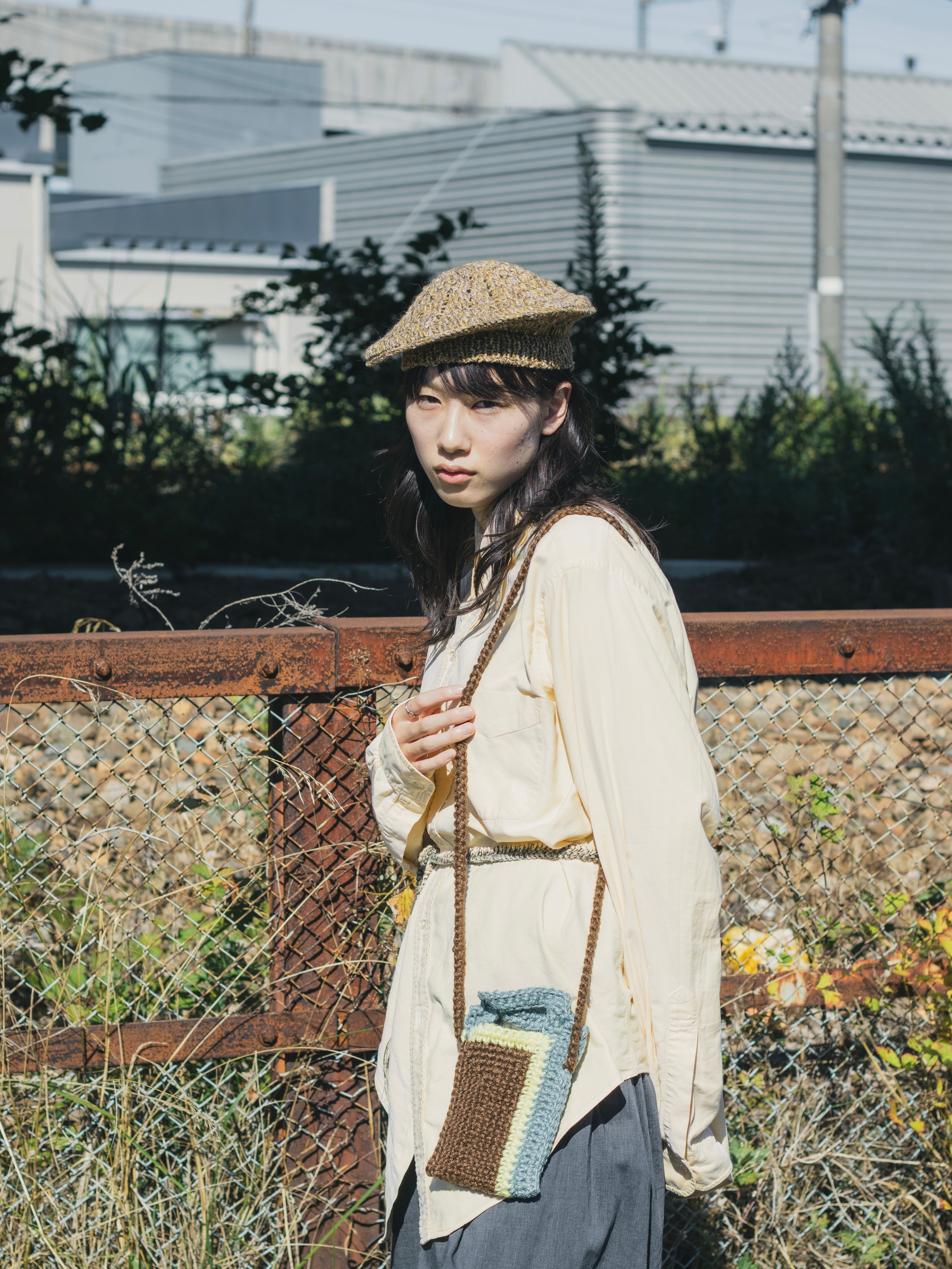 黄色、ベージュ、白やラメ入りの糸を混ぜて