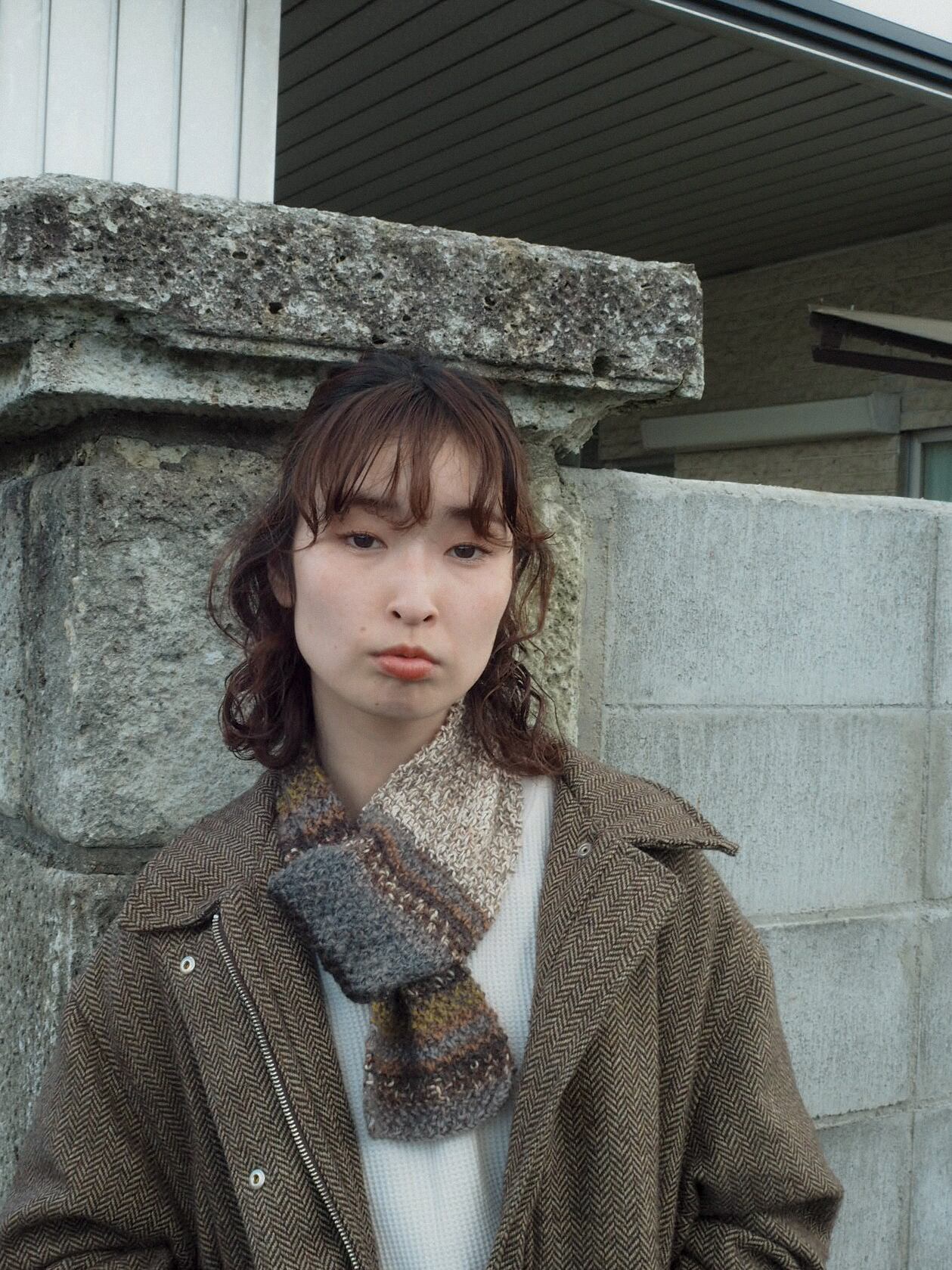 バイカラーのスヌード。