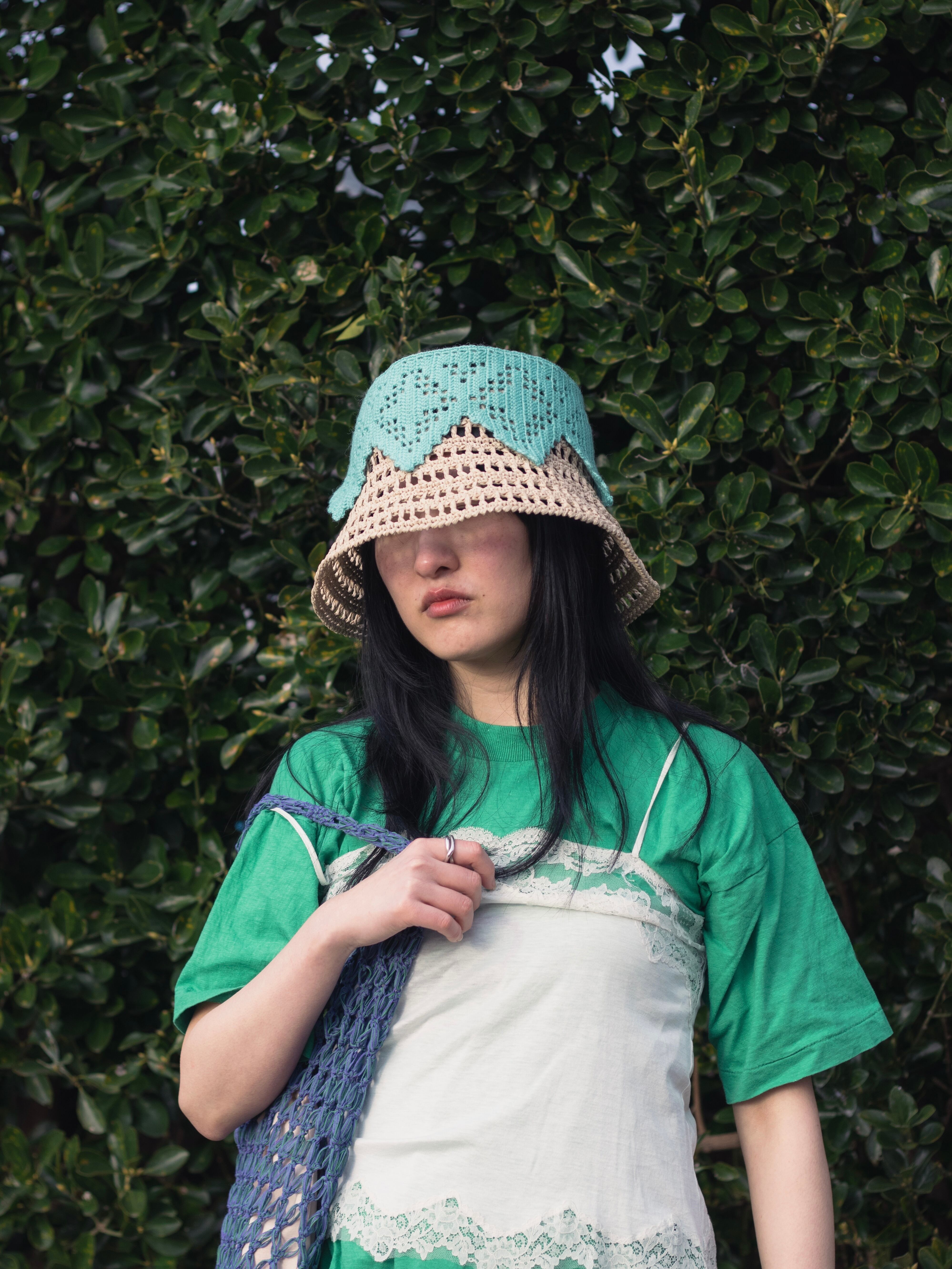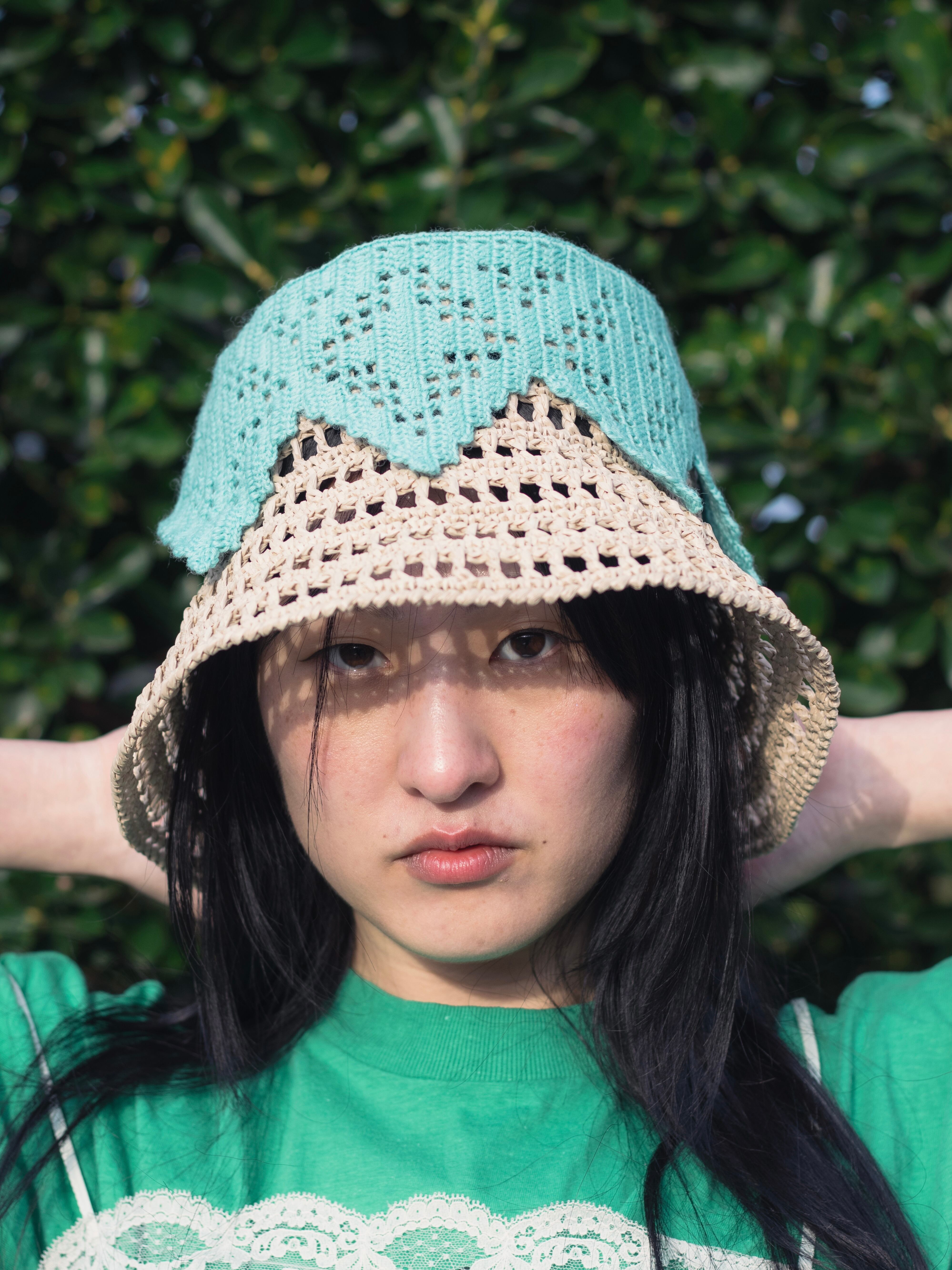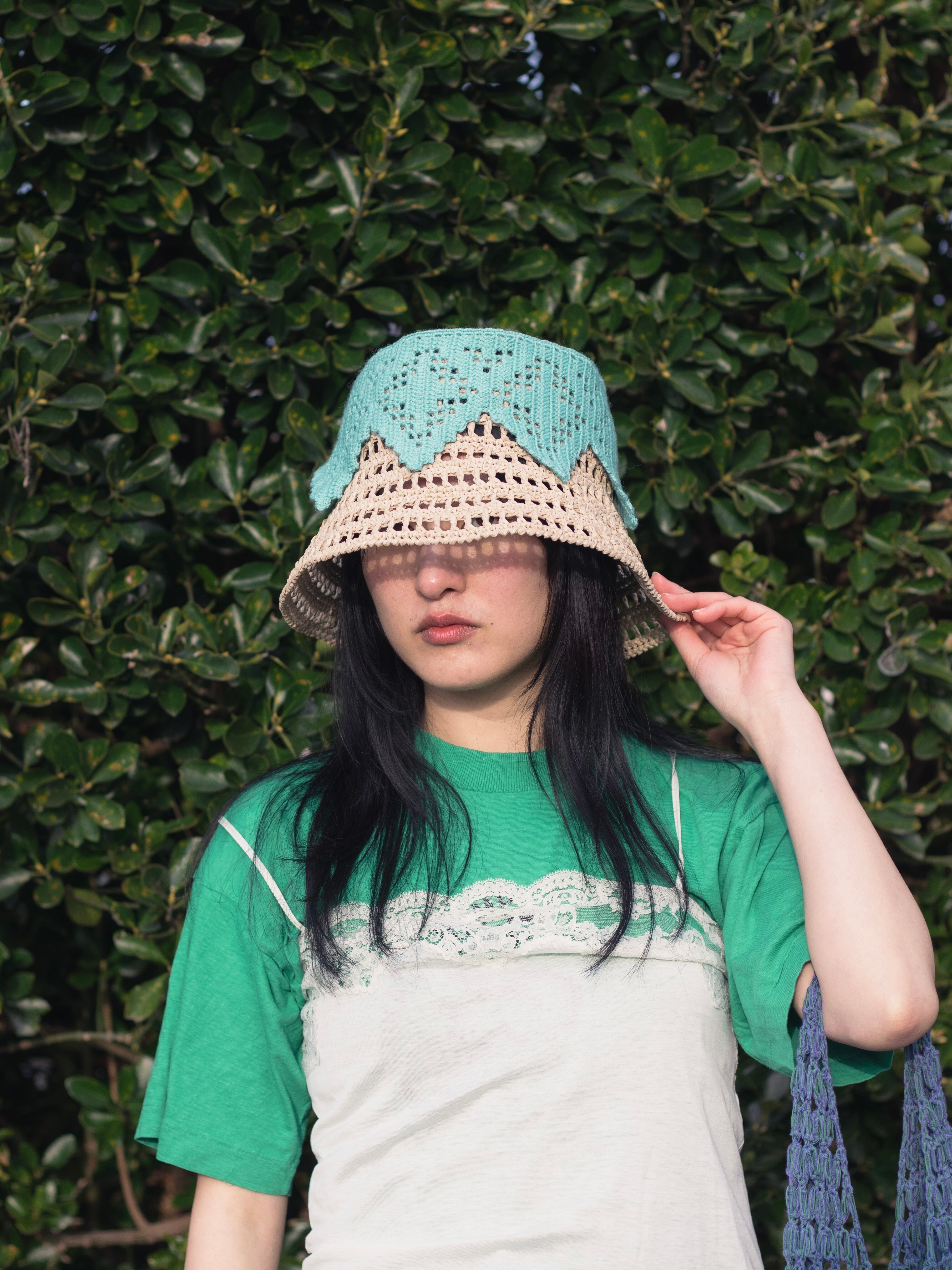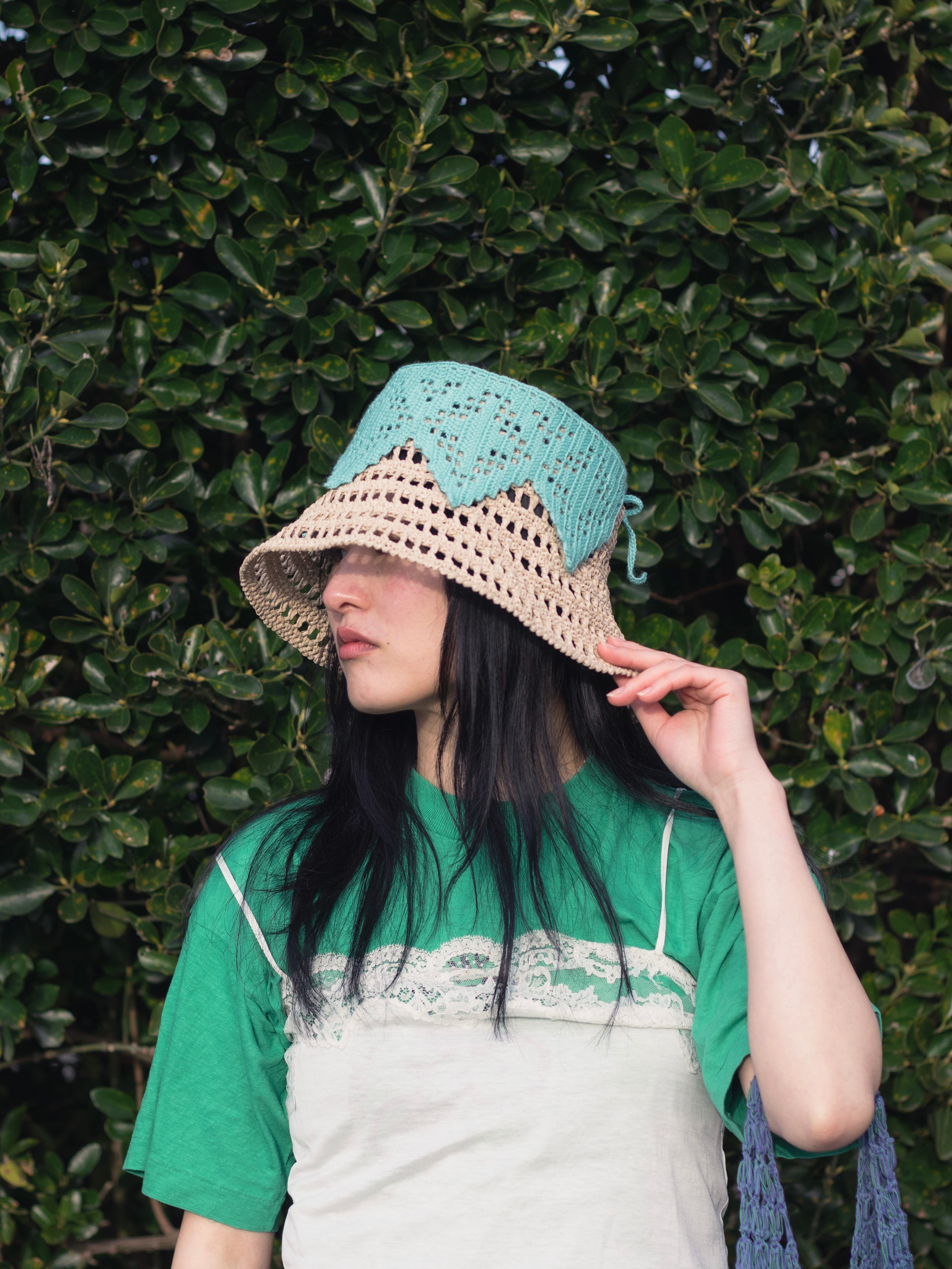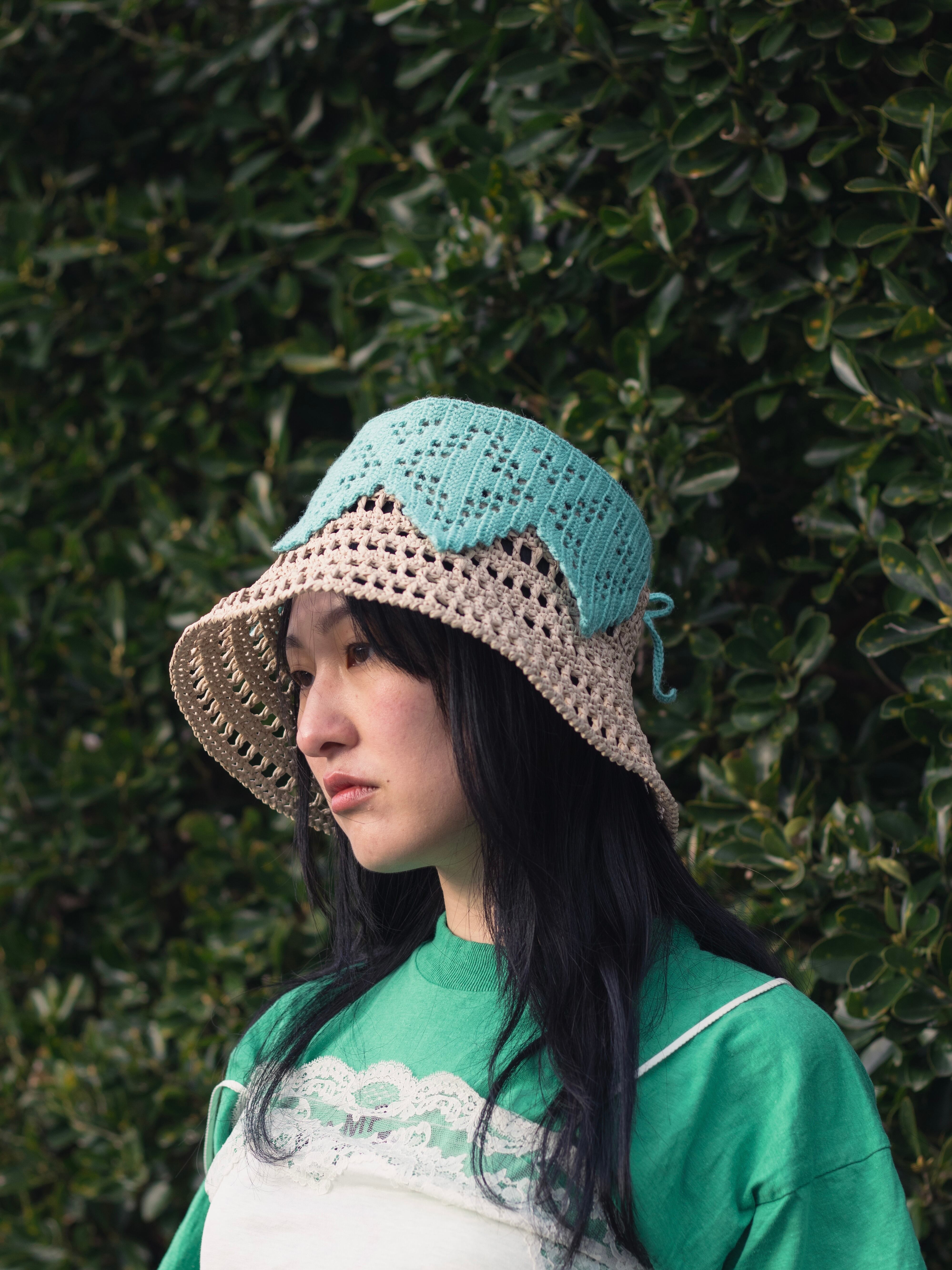 植物をイメージした透かし模様のバケットハット。