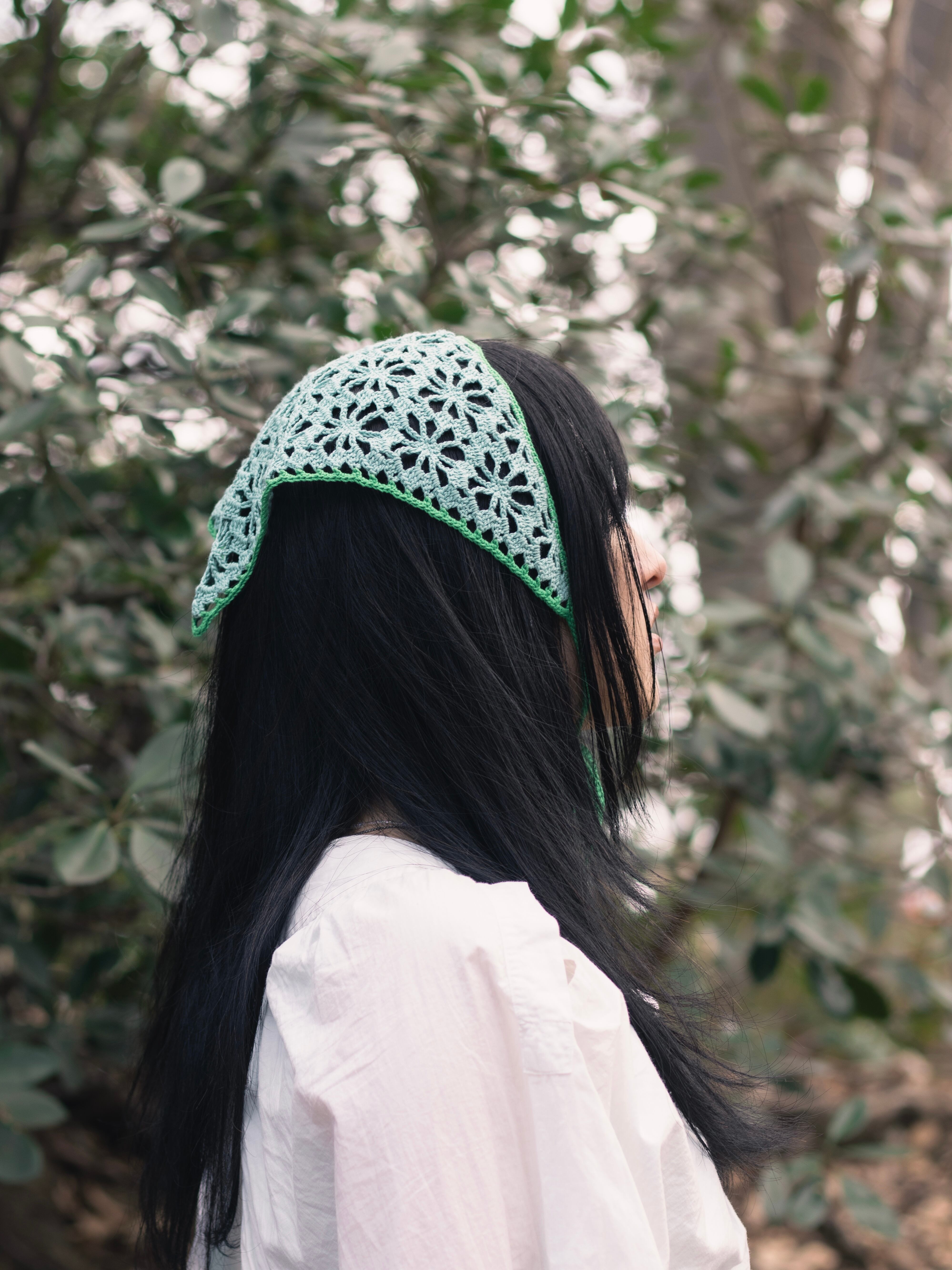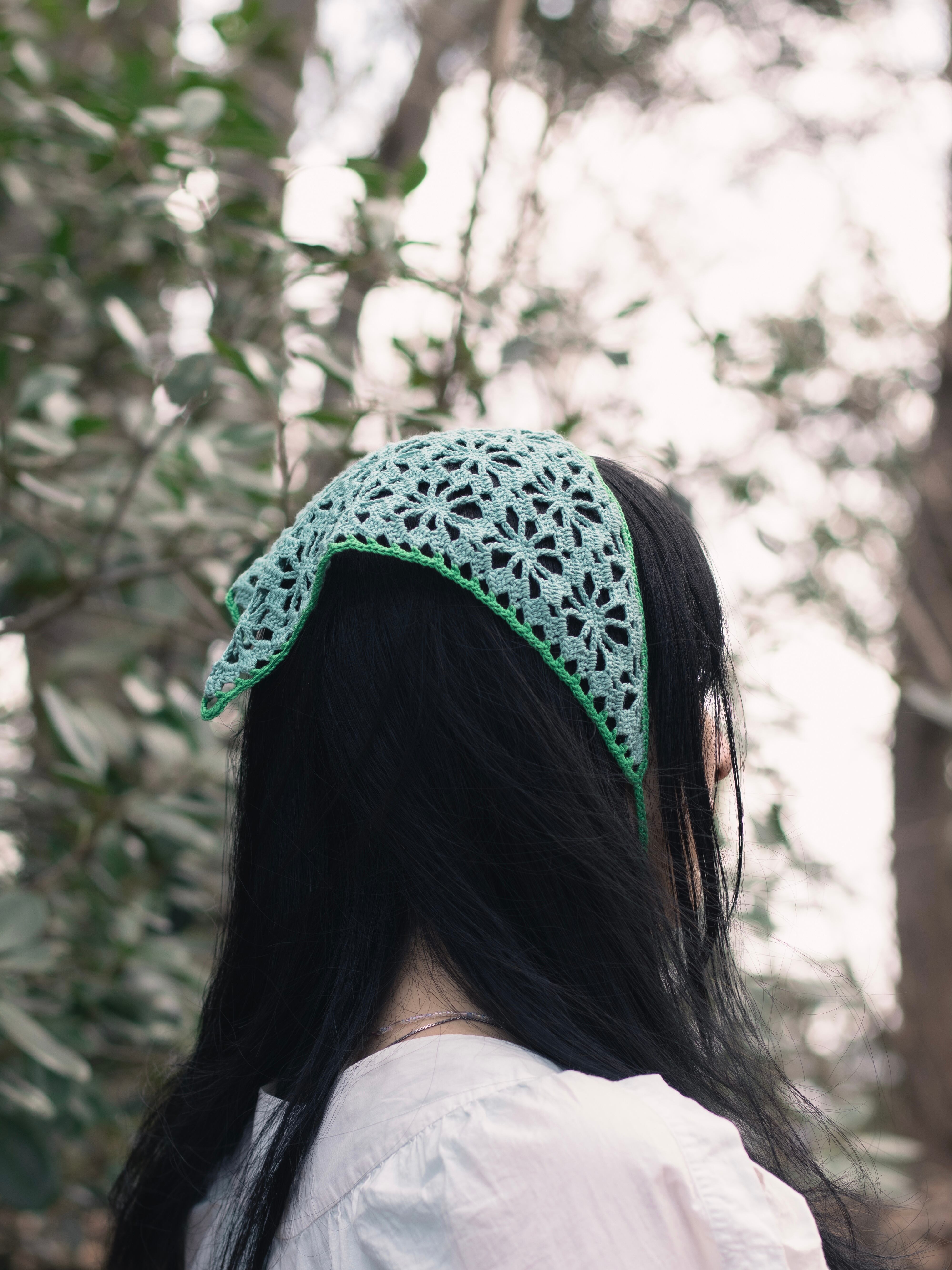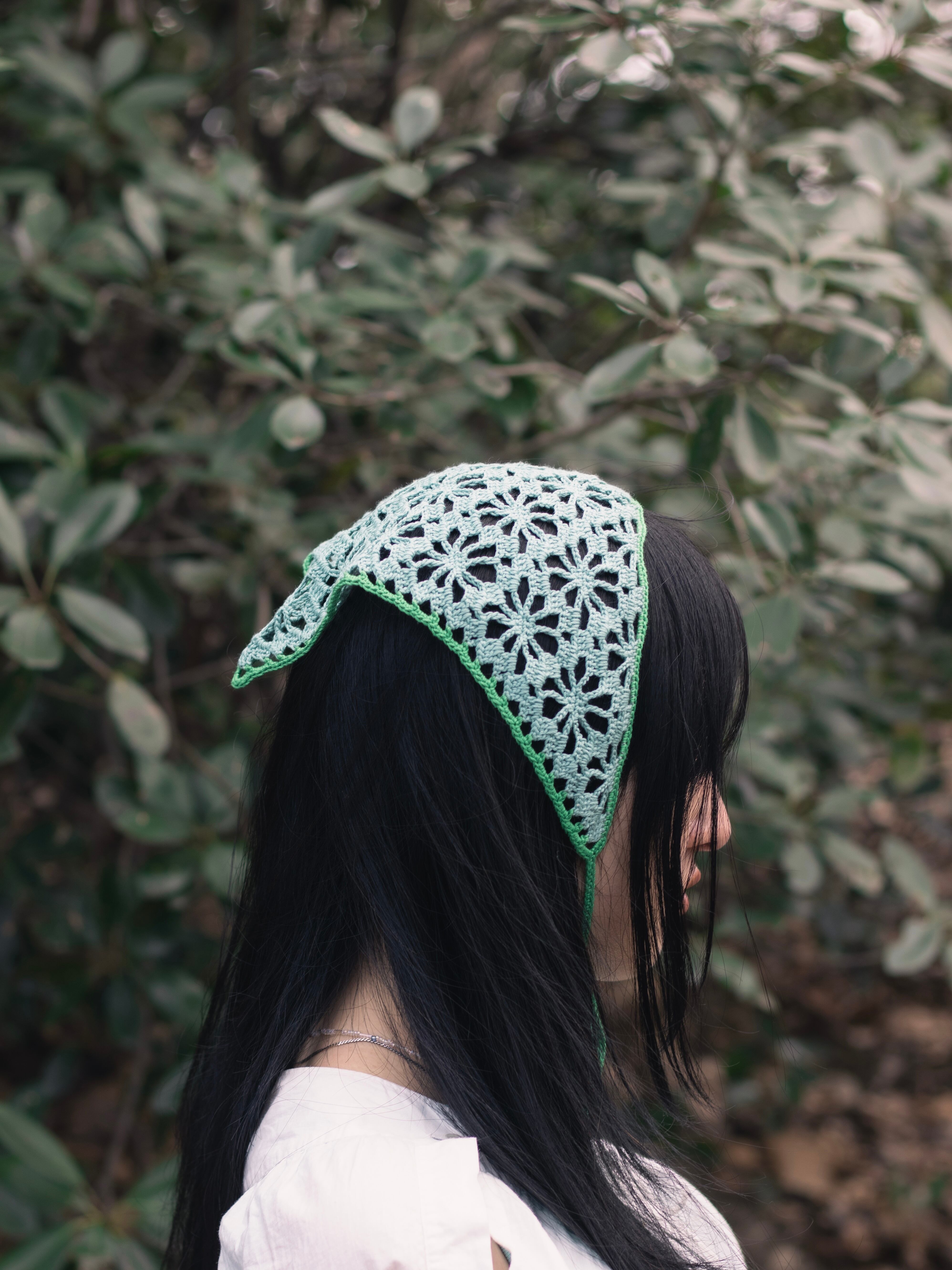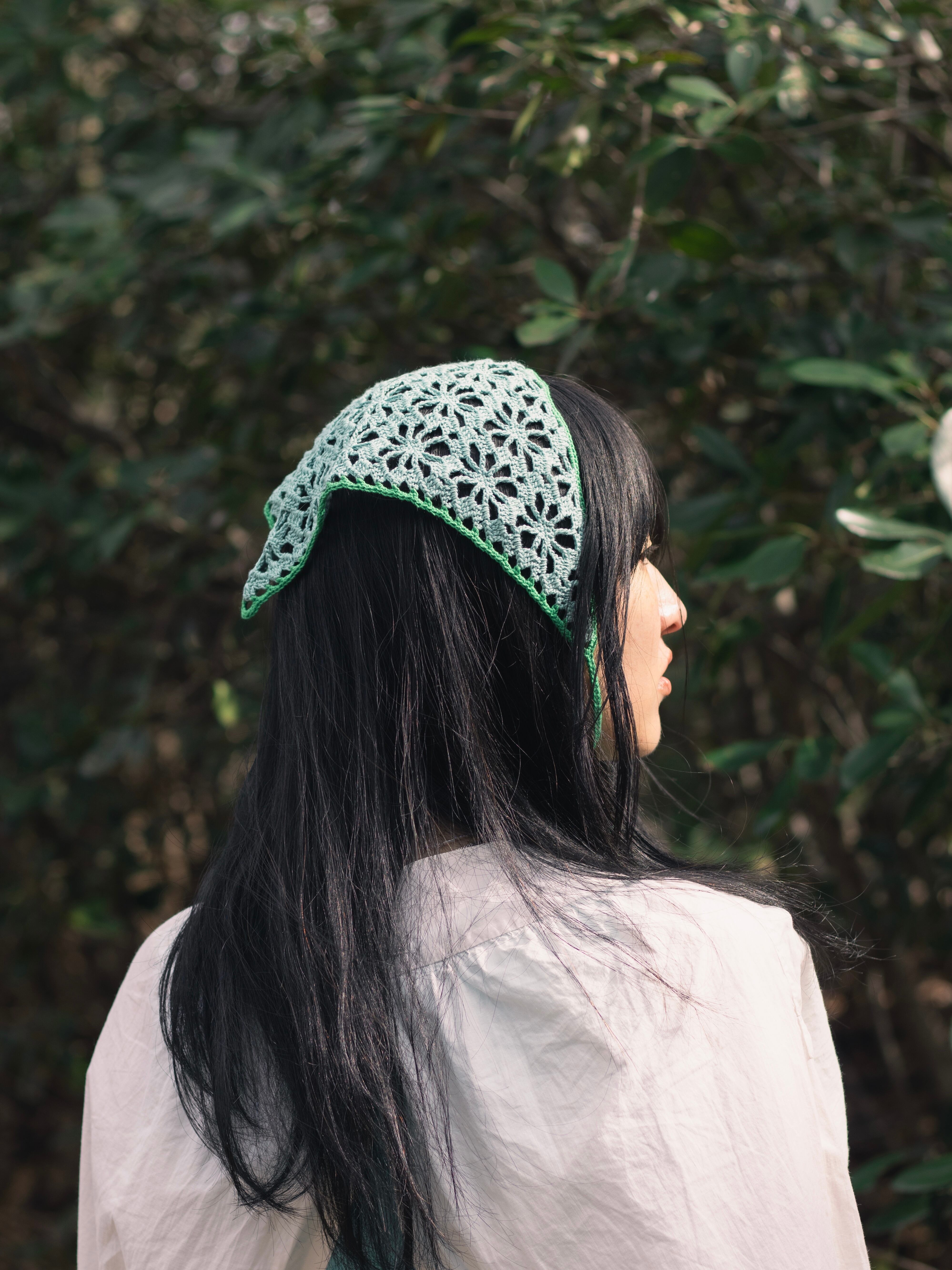 中細糸のクロシェバンダナ。