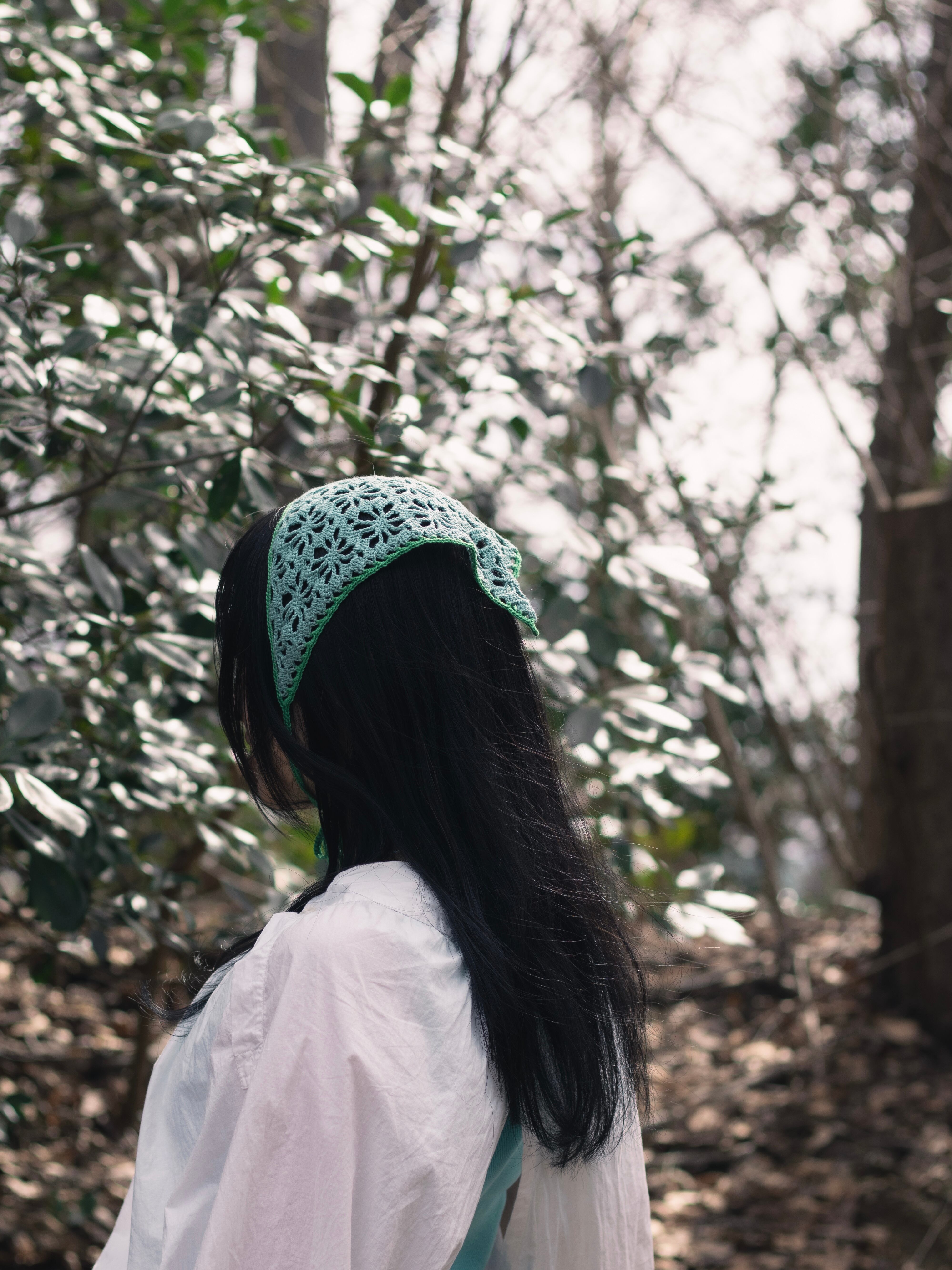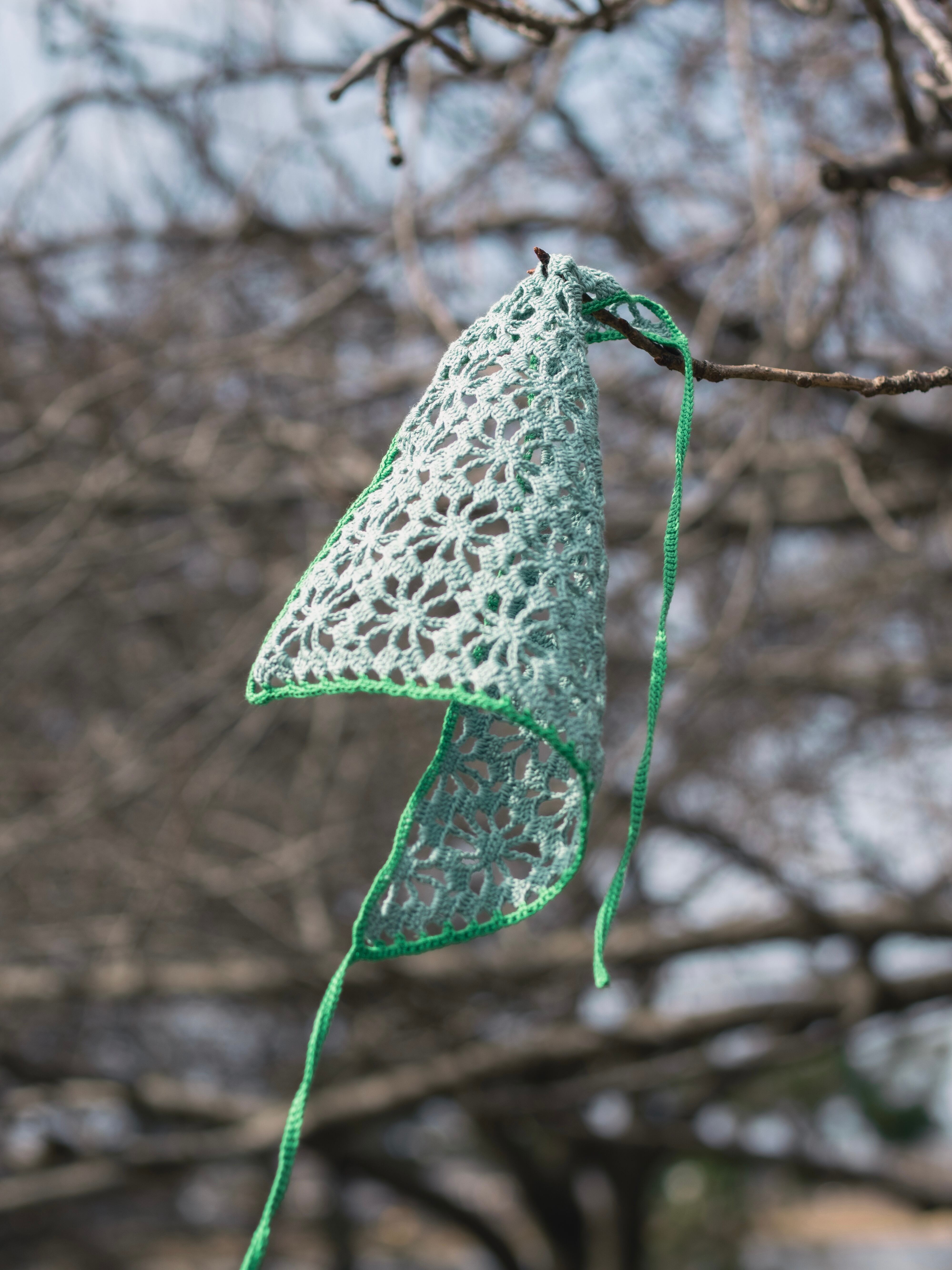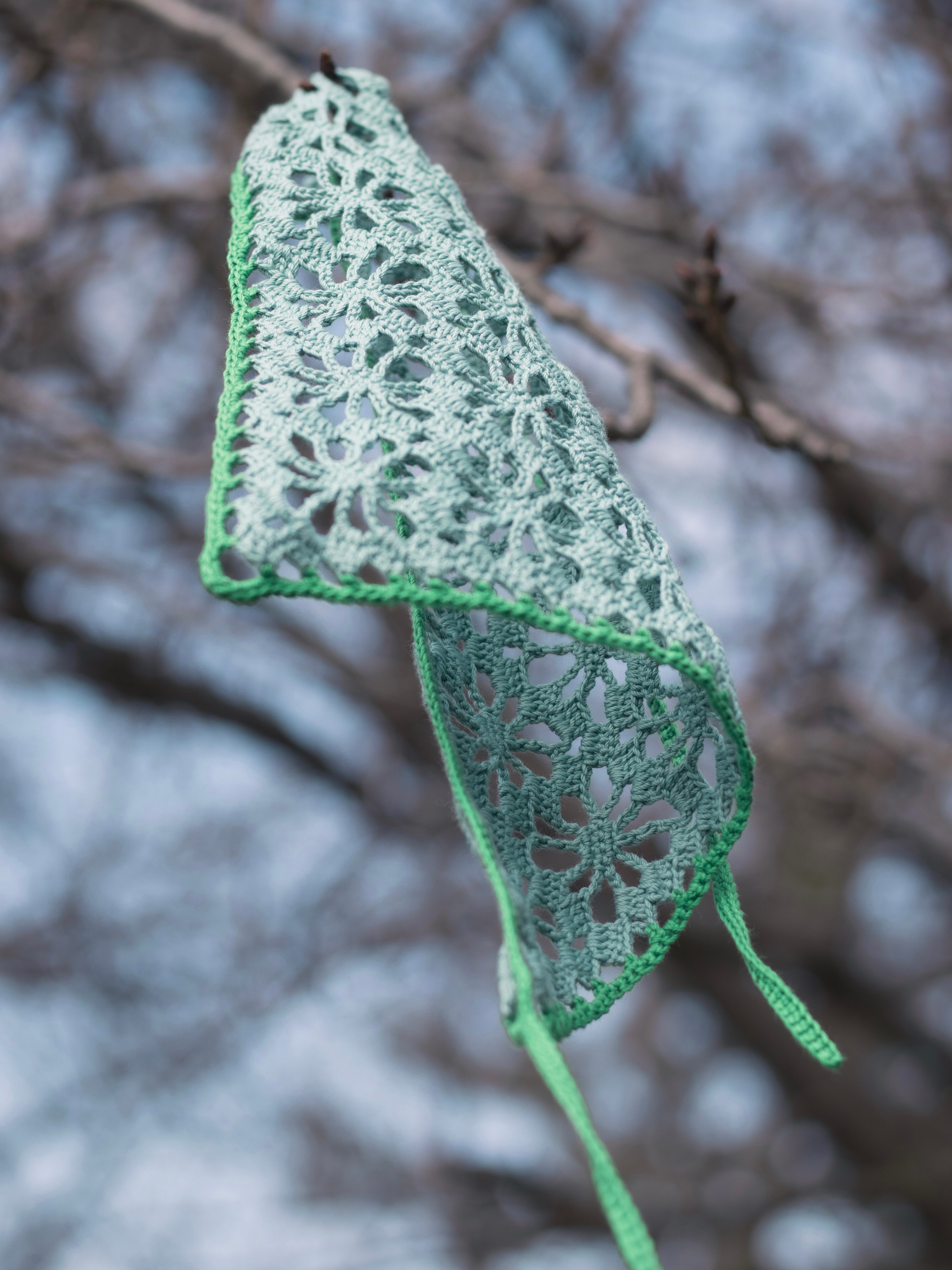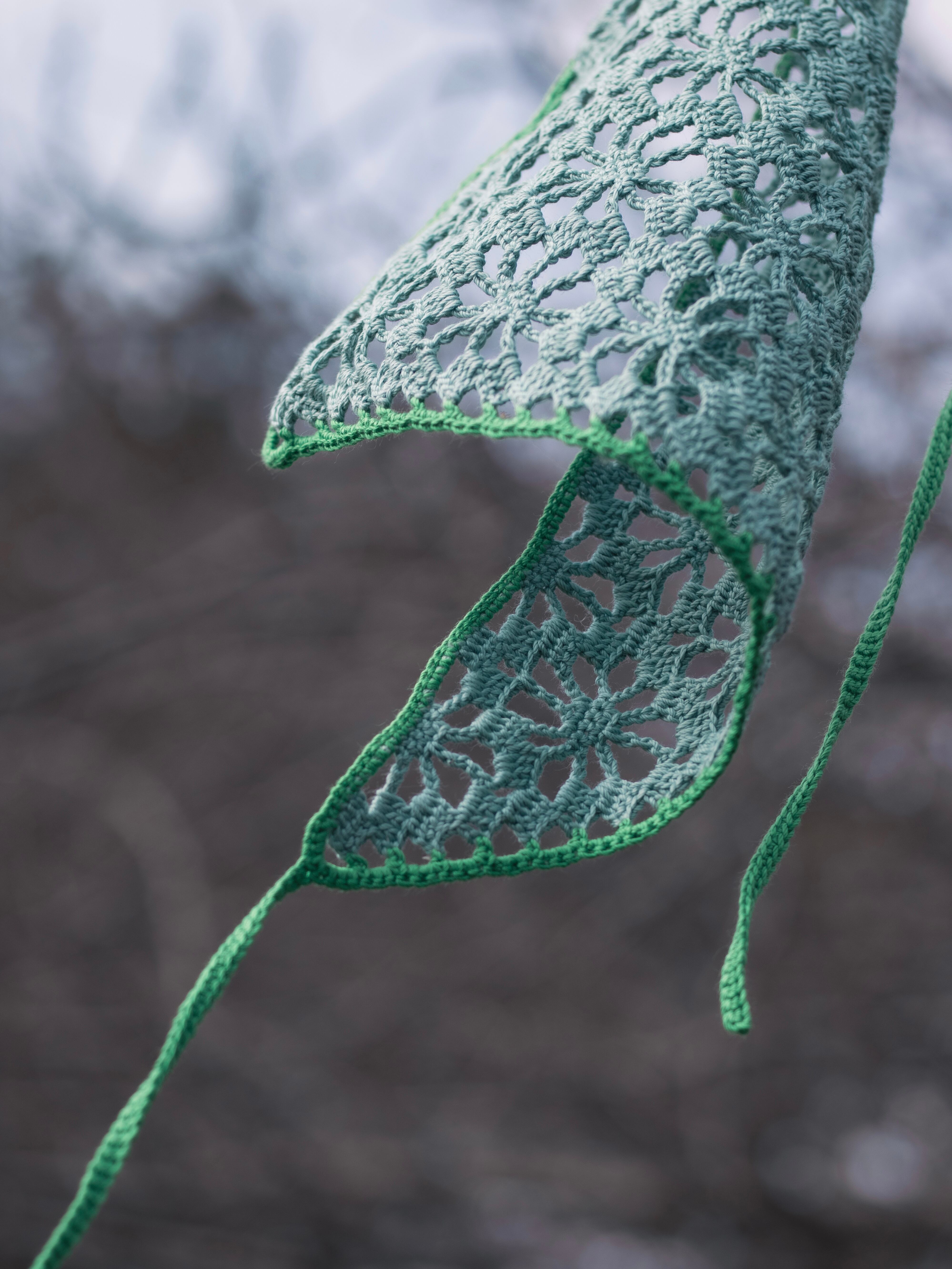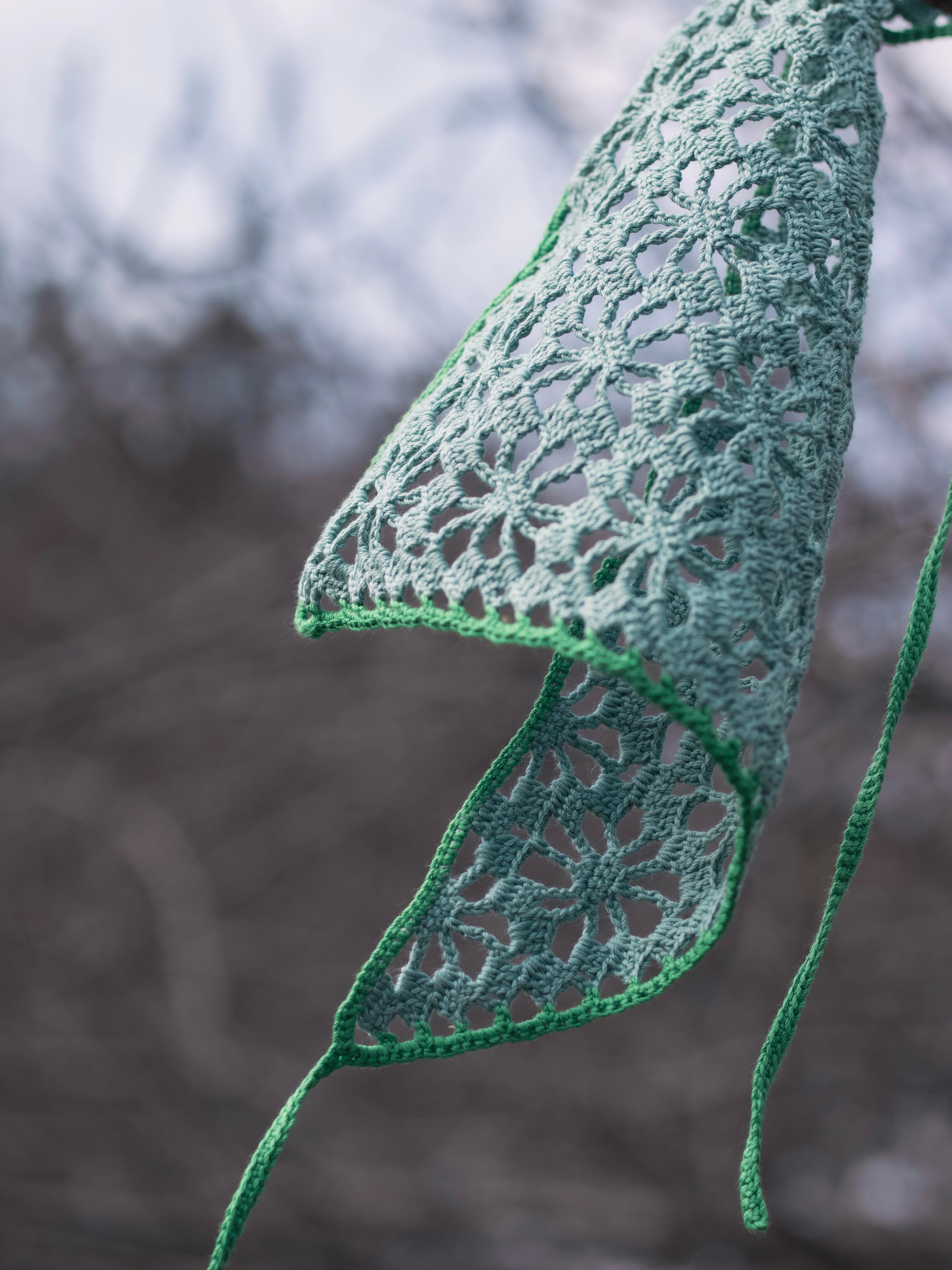 中細糸のクロシェバンダナ。