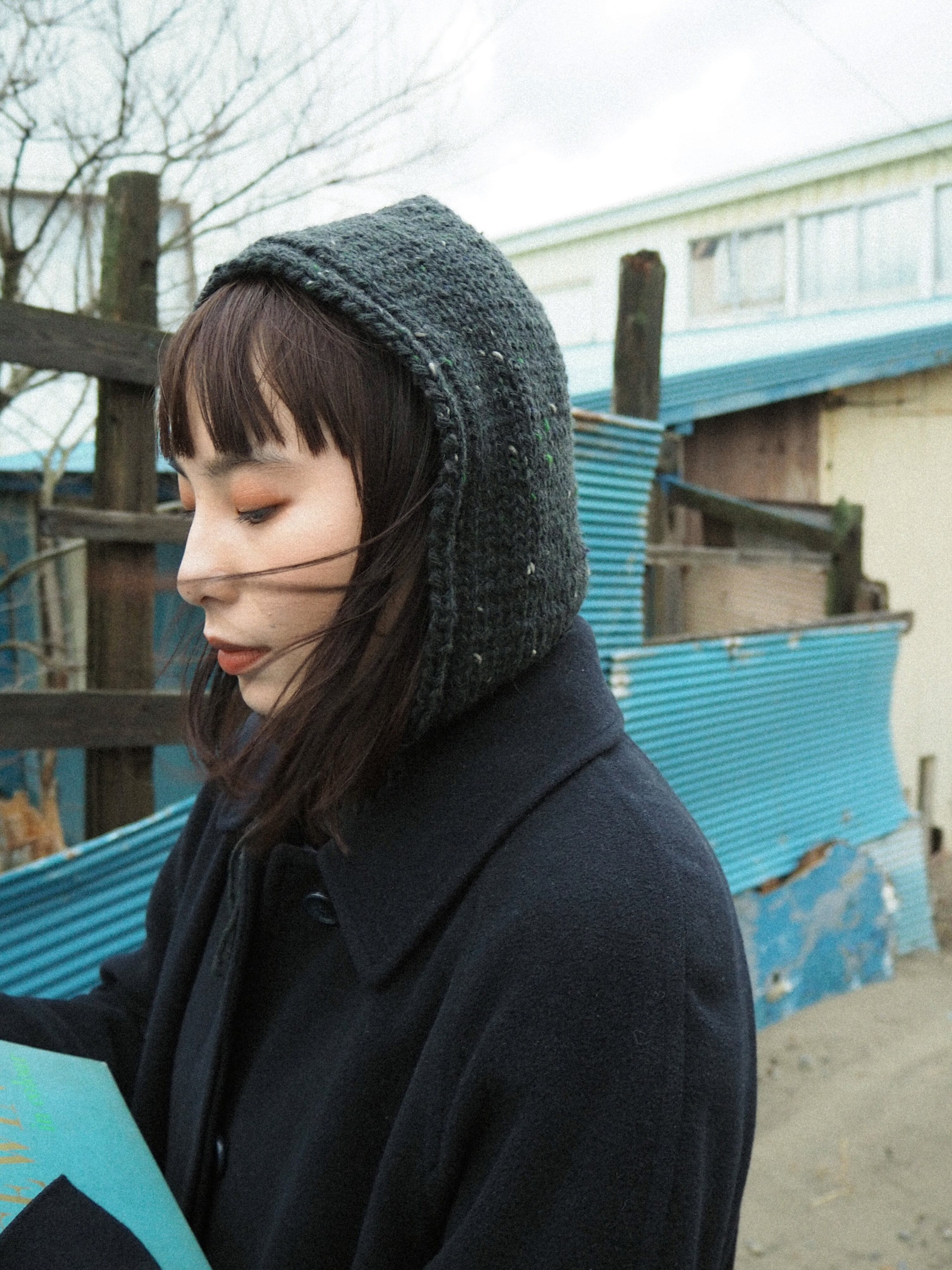 首から頭の先まで暖かいフードウォーマー。