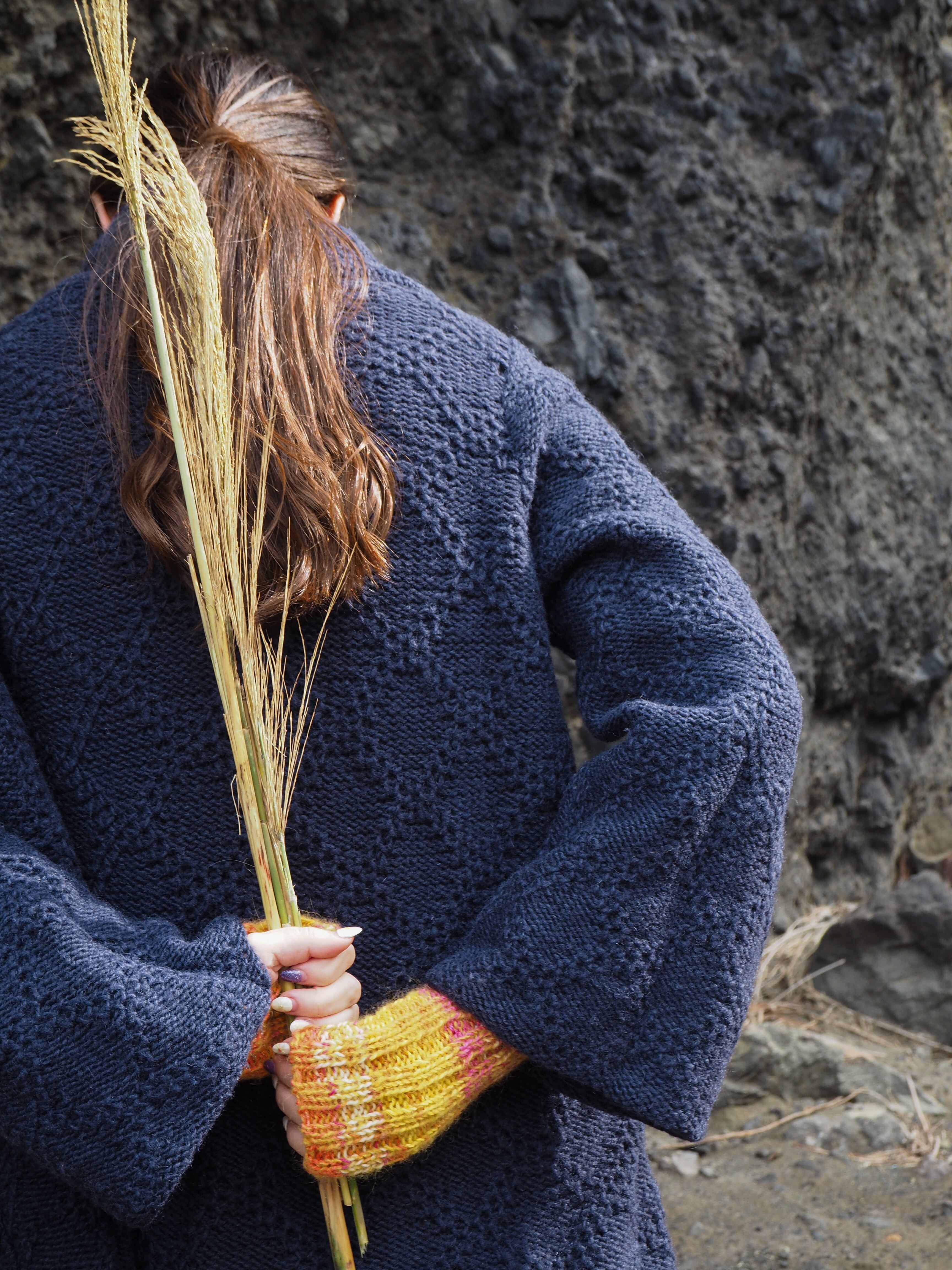 モヘアを引き揃えたアームウォーマー。