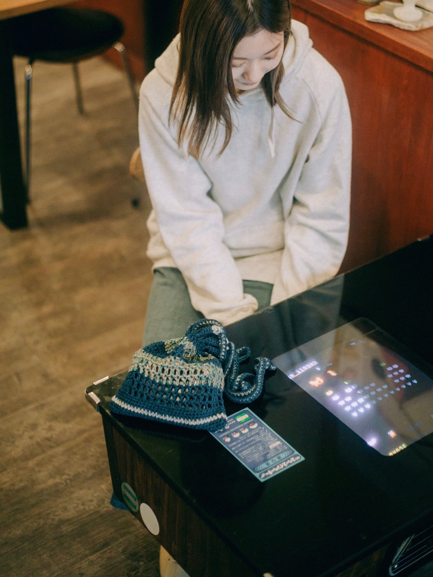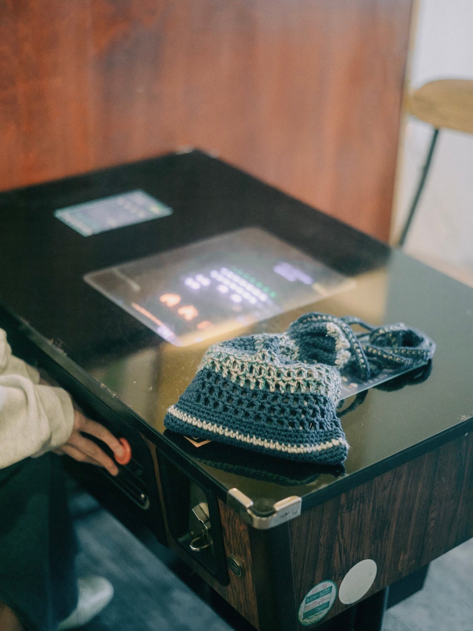 シンプルなお洋服のポイントになる青緑。