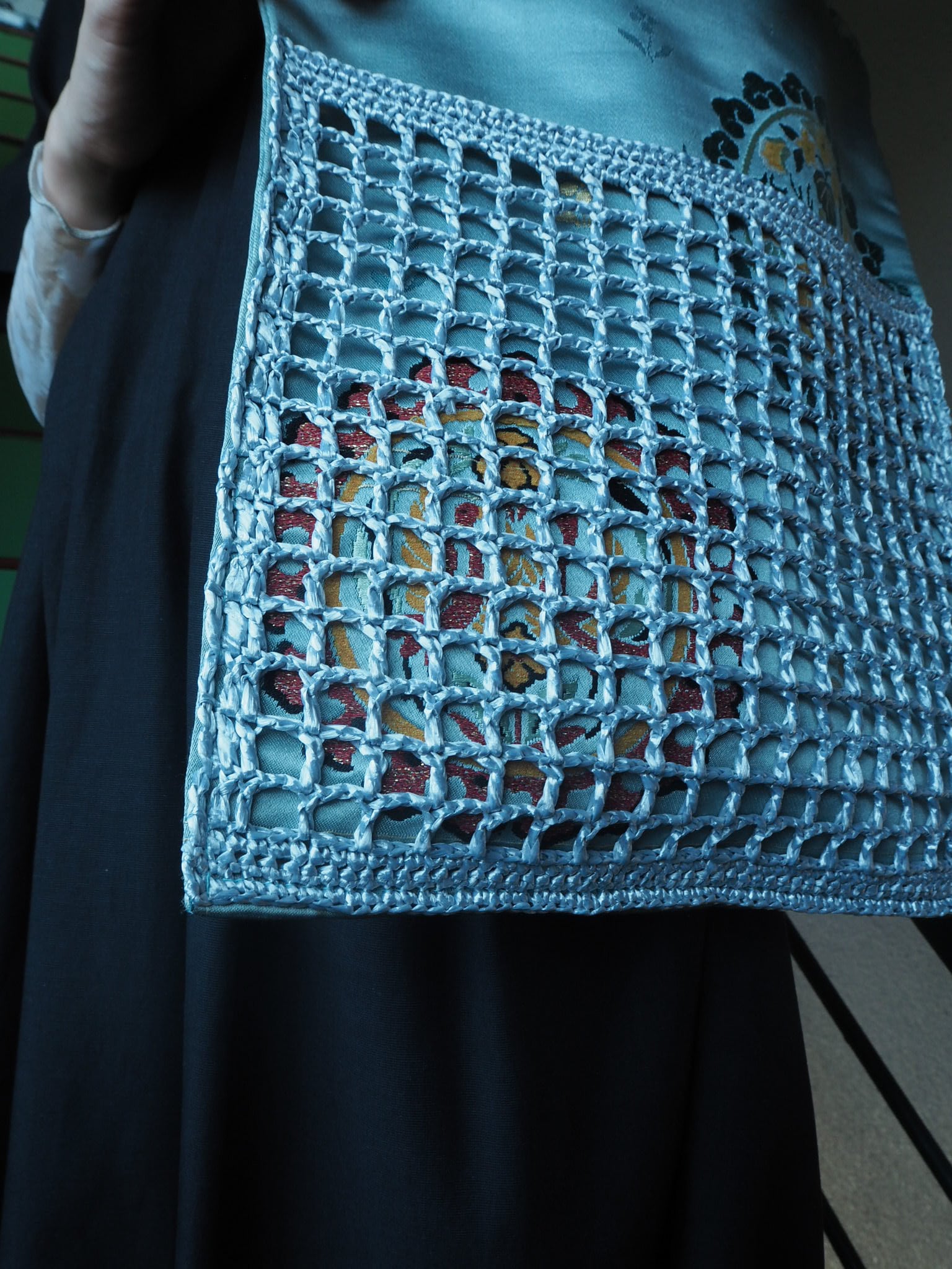 透かし模様のメッシュポケットを