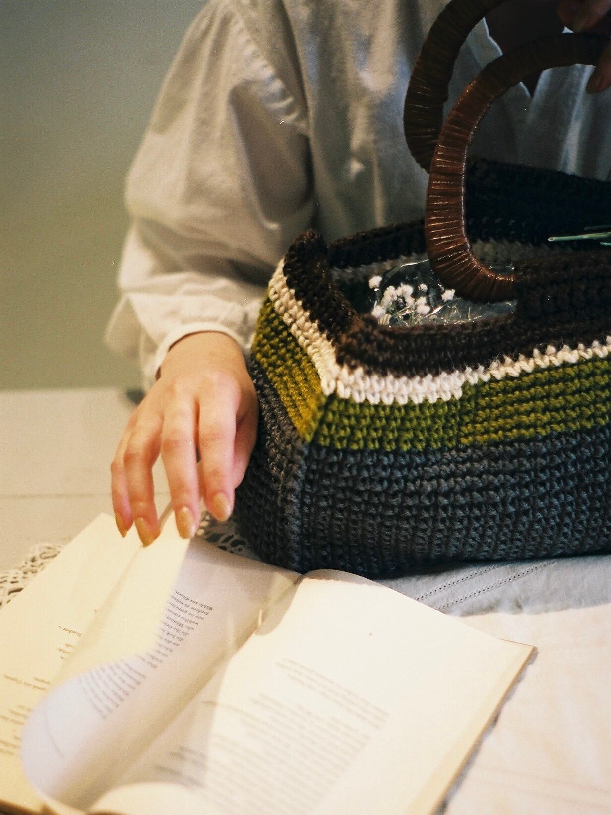 麻紐のハンドバッグ。