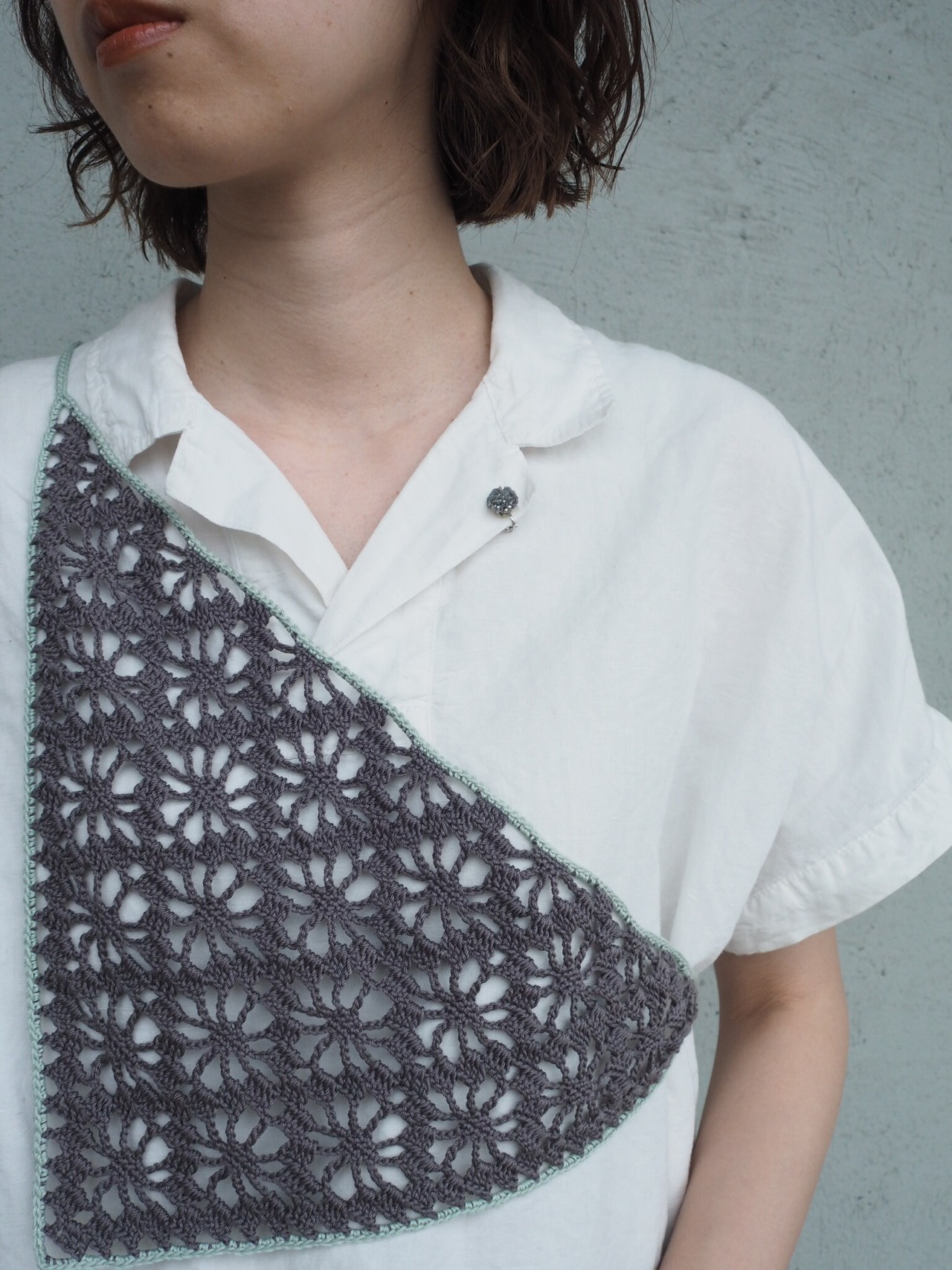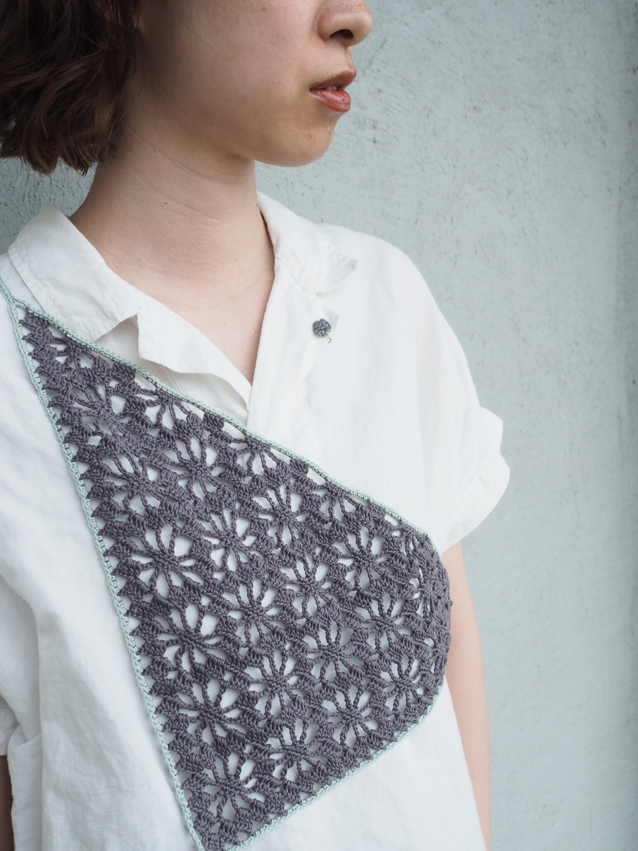 中細糸のクロシェバンダナ。