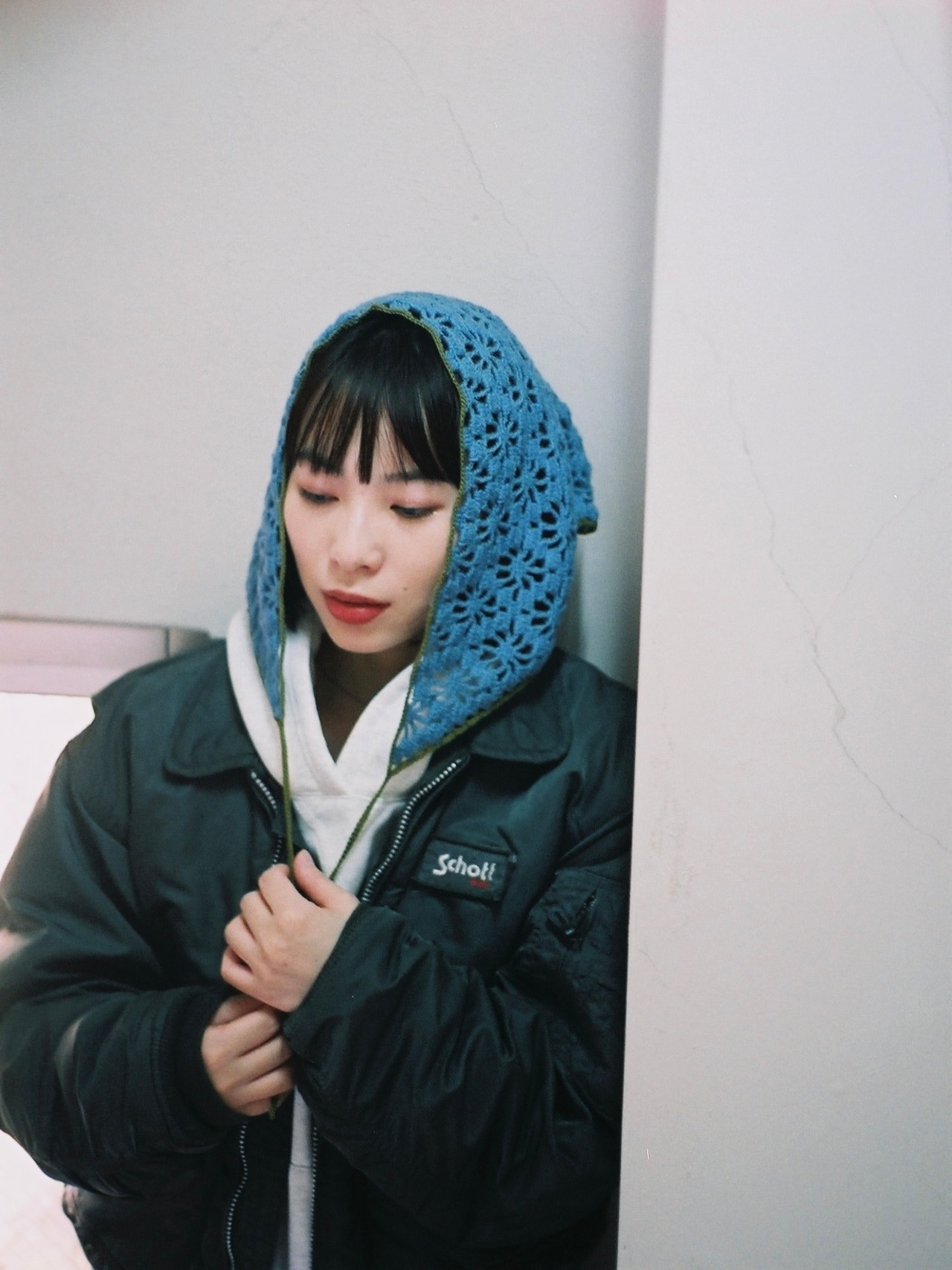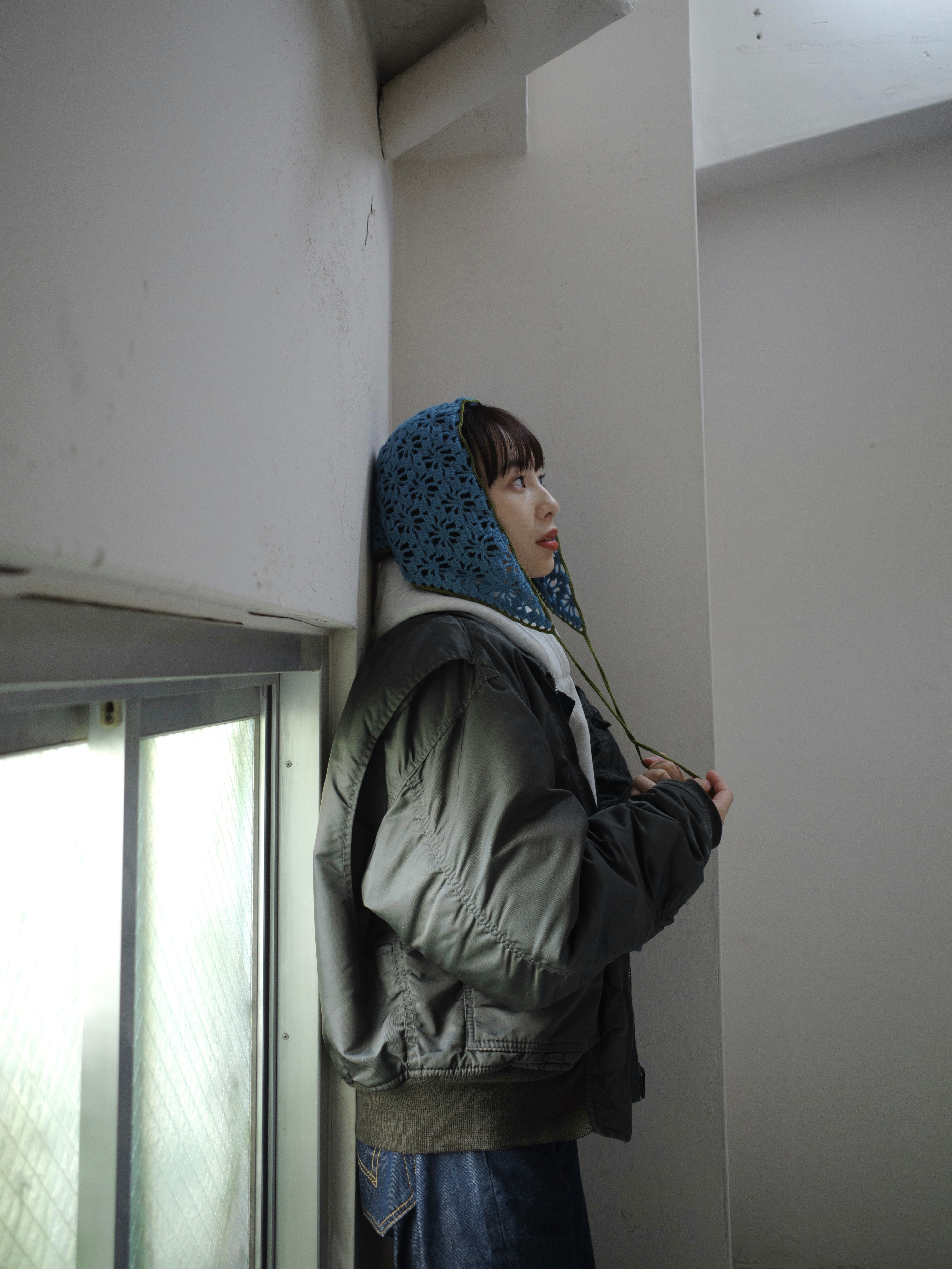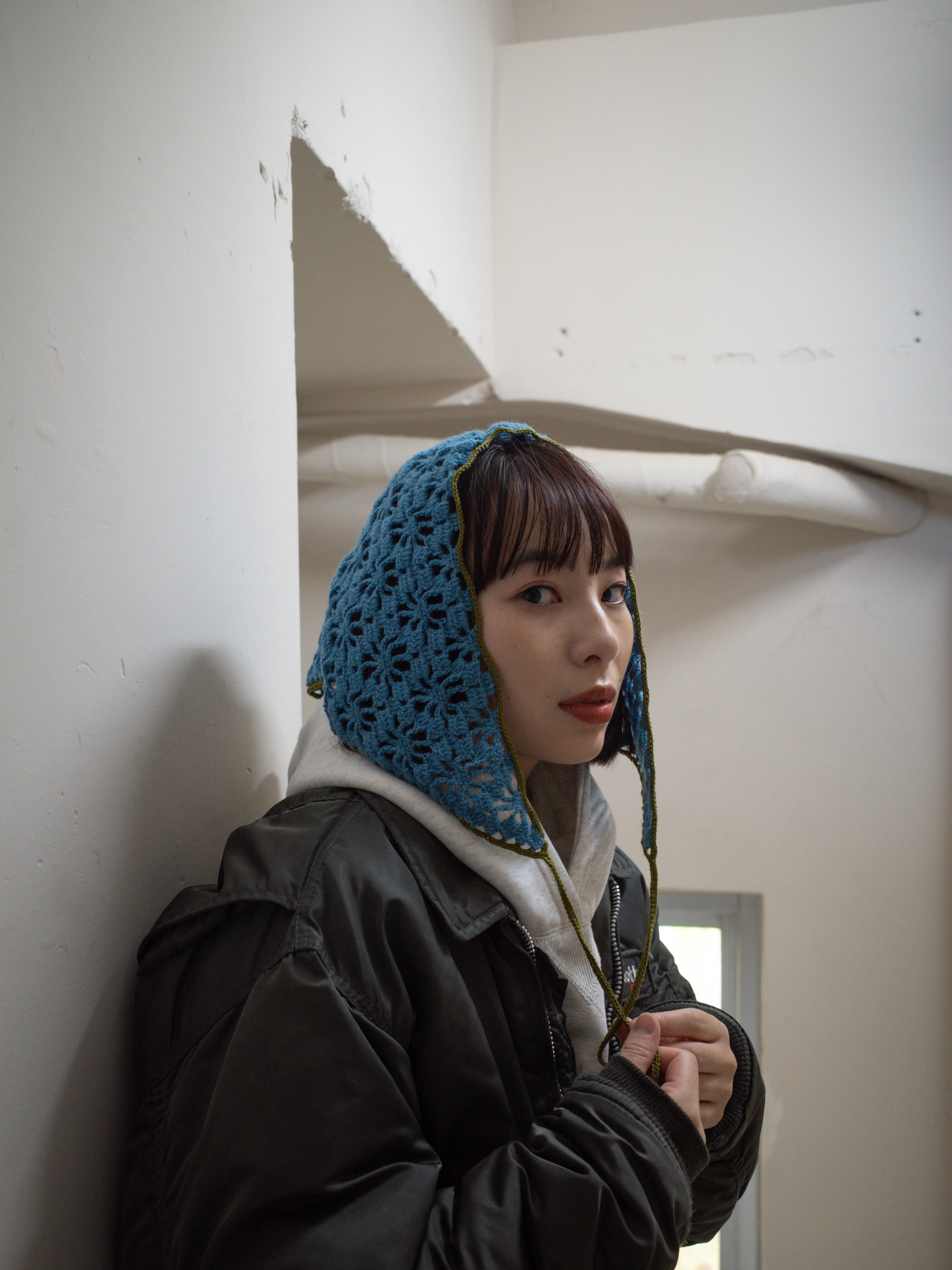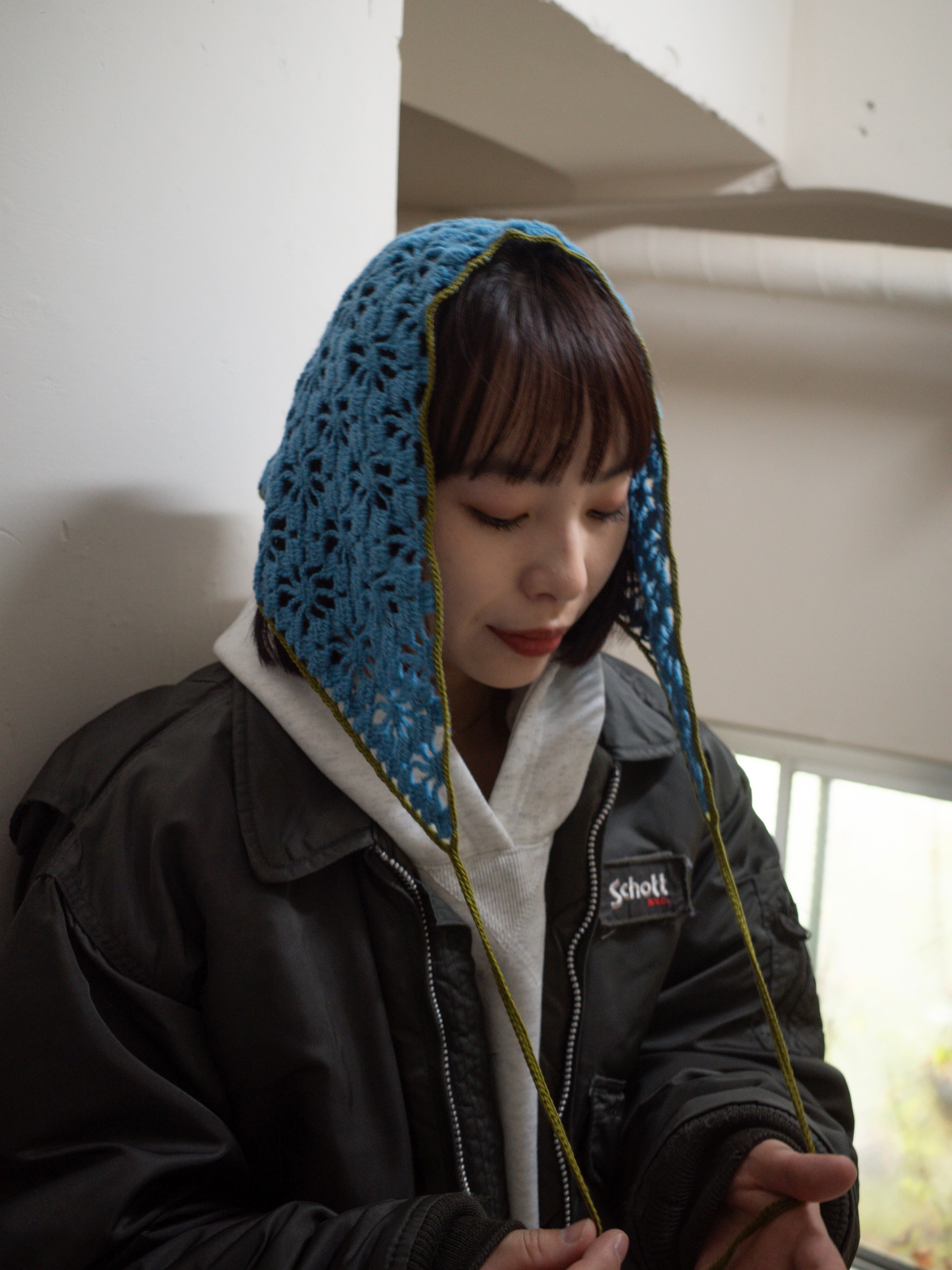 中細糸のクロシェバンダナ。