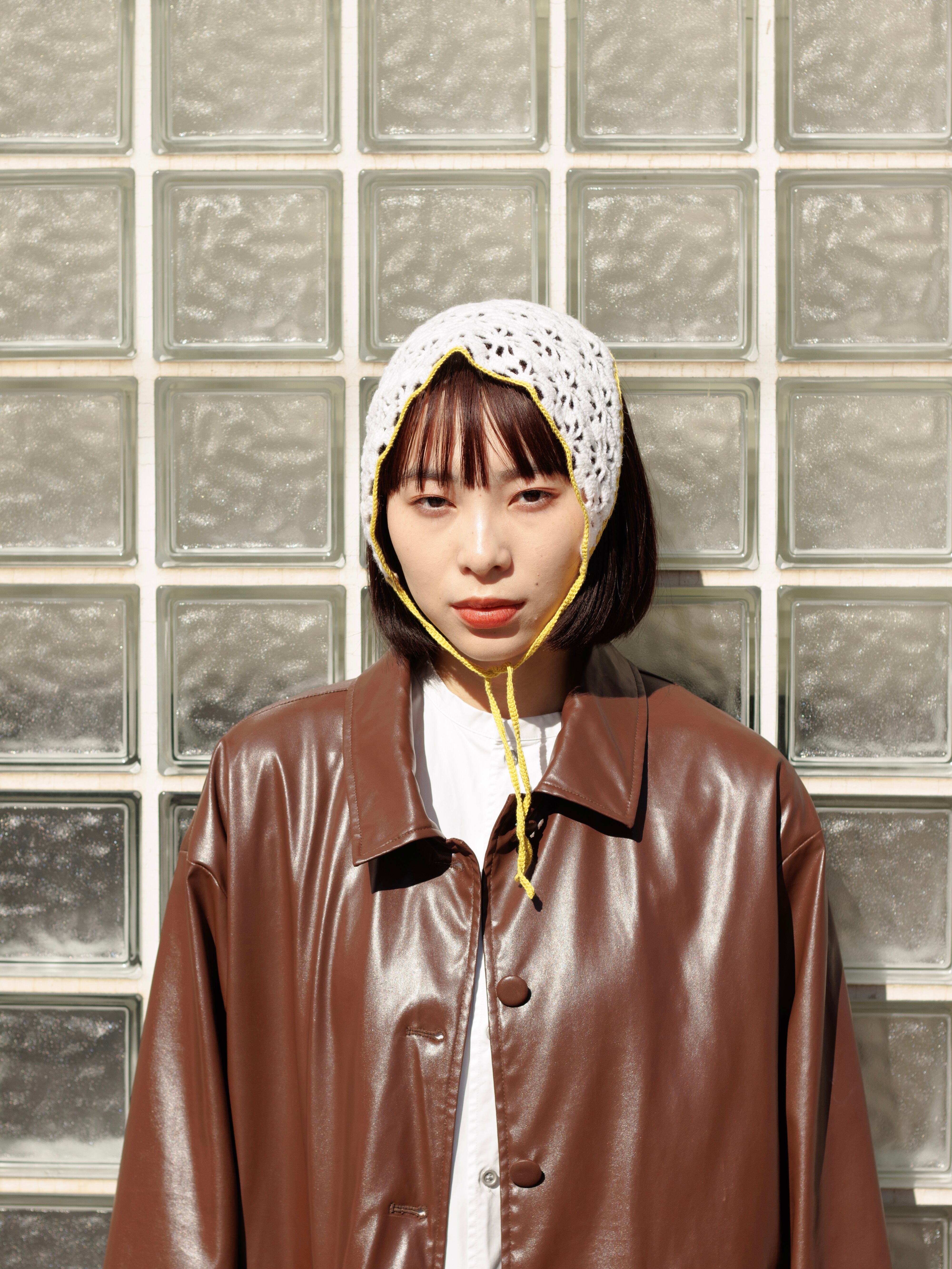 中細糸のクロシェバンダナ。