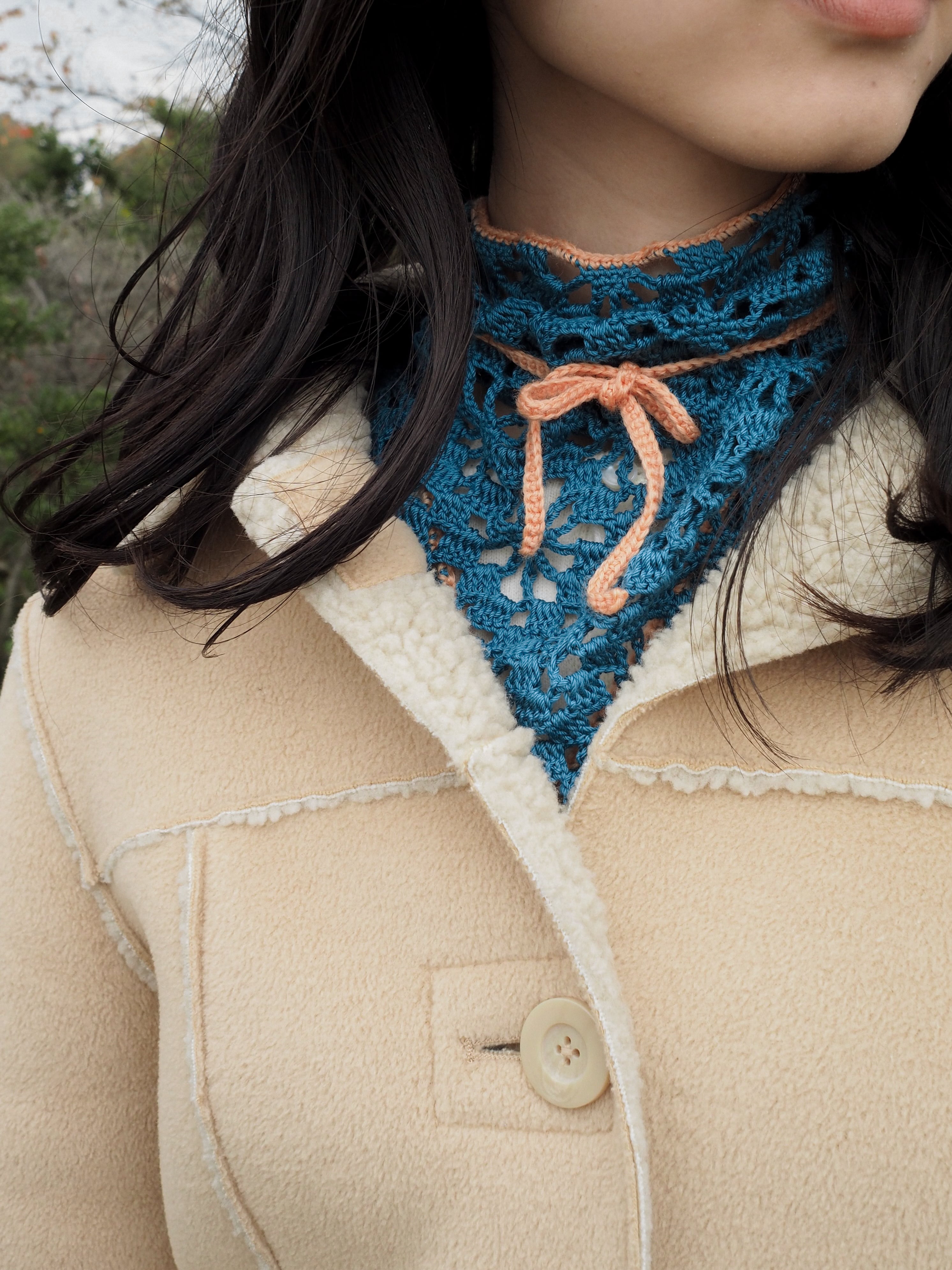 中細糸のクロシェバンダナ。